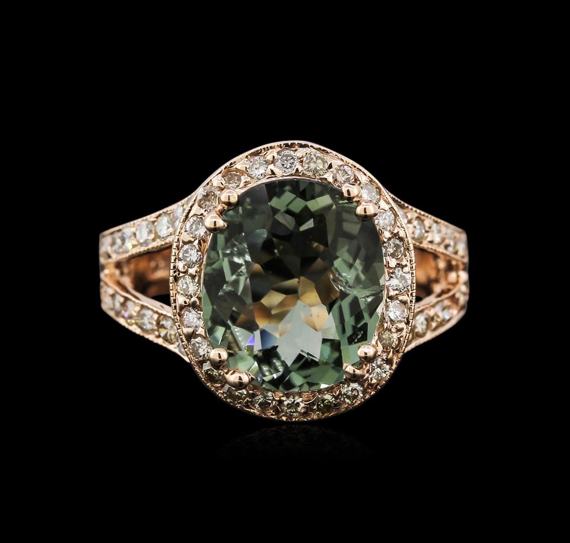 One ring featuring: 14KT rose gold weighing 7.90 grams containing one tourmaline with a total weight of 3.90ct and diamonds with a total weight of 0.68ct.