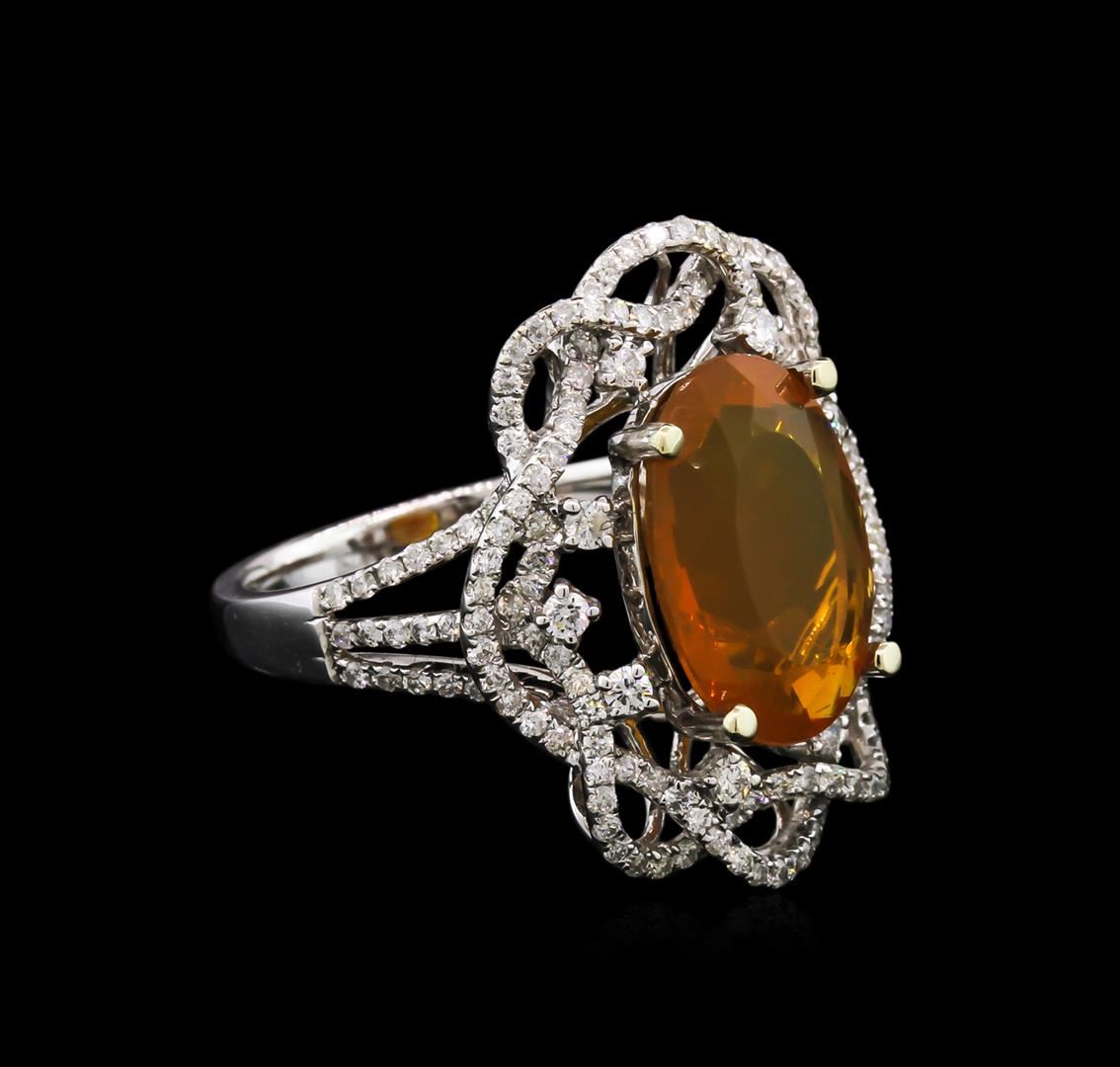 One ring featuring: 18KT white gold weighing 6.73 grams containing one fire opal with a total weight of 3.94ct and diamonds with a total weight of 0.96ct.