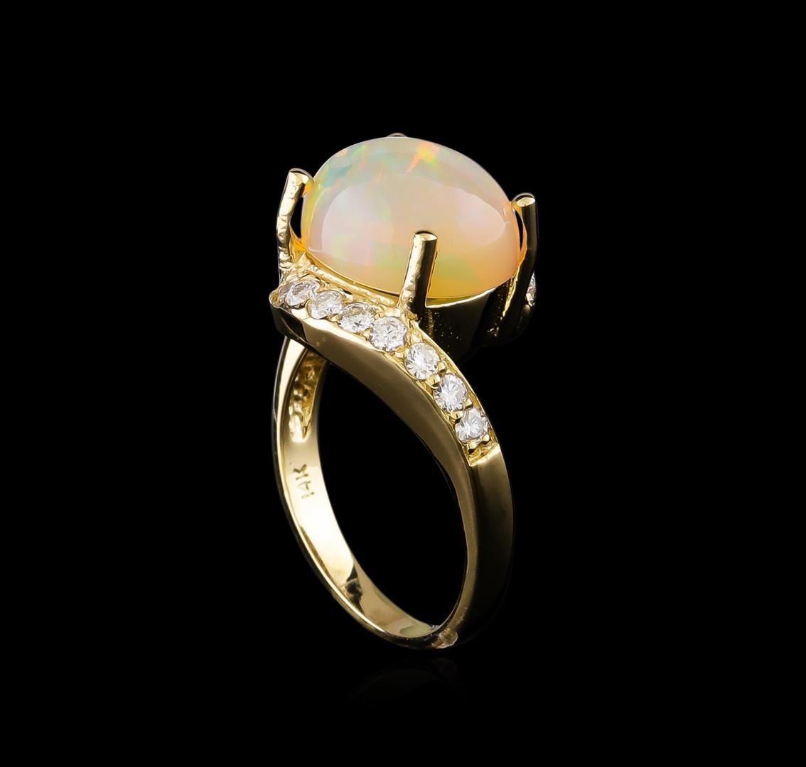 One ring featuring: 14KT yellow gold weighing 4.36 grams containing one opal weighing 3.95ct and diamonds weighing 0.40ctw.