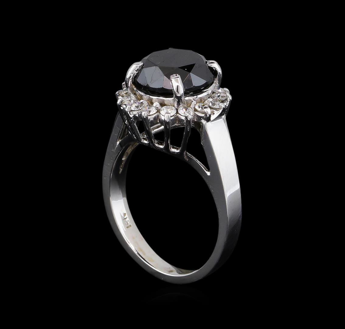 One ring featuring: 14KT white gold weighing 4.90 grams containing one black diamond with a total weight of 3.60ct and side diamonds with a total weight of 0.38ct.