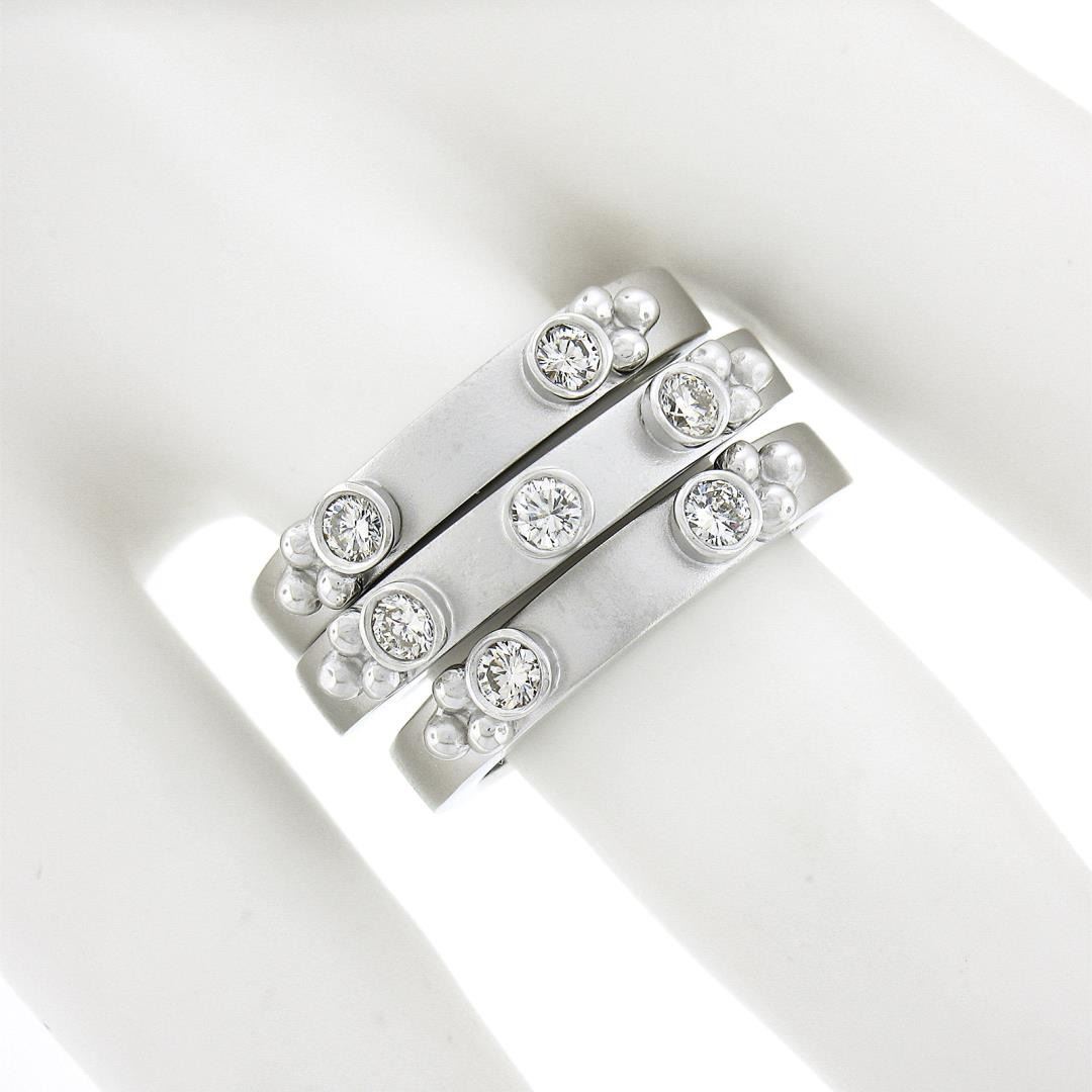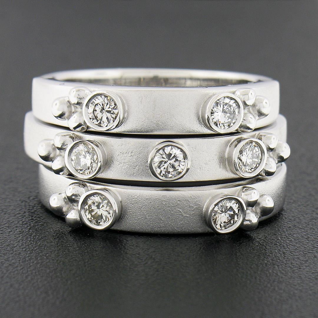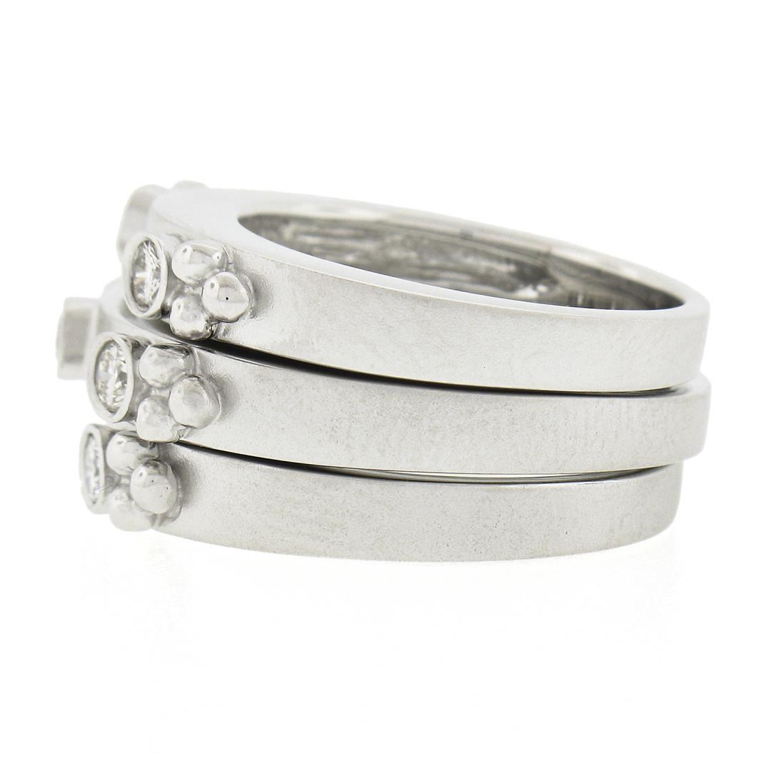 A new solid 14k white gold set of 3 stack band ring, featuring 7 round cut natural diamonds (G-I - VS2/SI1 ; 0.46ctw). The ring is size 6.0, weighs a total of 14.14 grams, and measures 11.2mm wide.