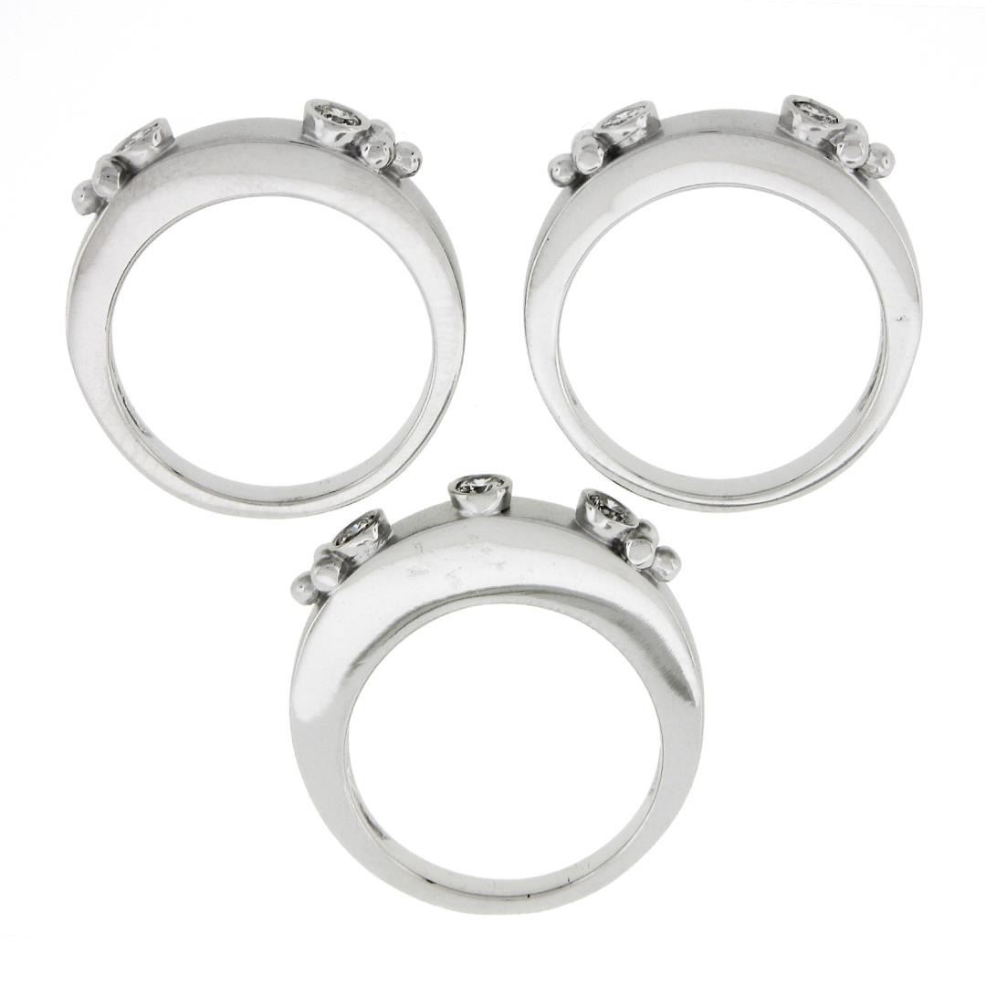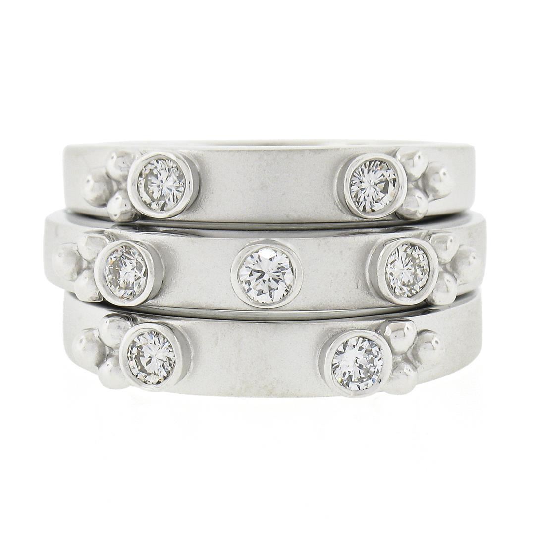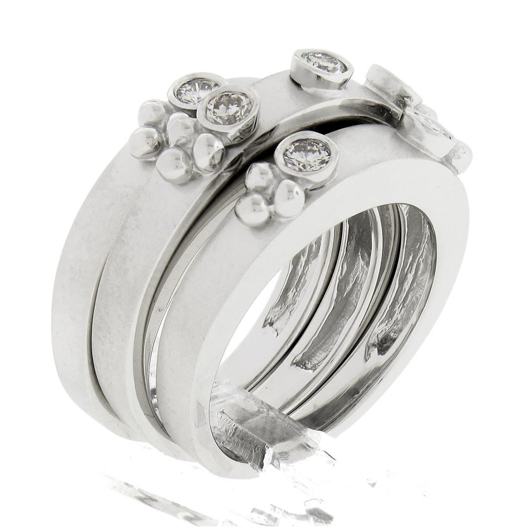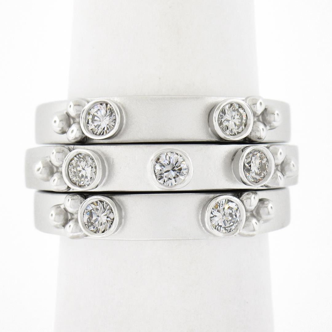 A new solid 14k white gold set of 3 stack band ring, featuring 7 round cut natural diamonds (G-I - VS2/SI1 ; 0.46ctw). The ring is size 6.0, weighs a total of 14.14 grams, and measures 11.2mm wide.