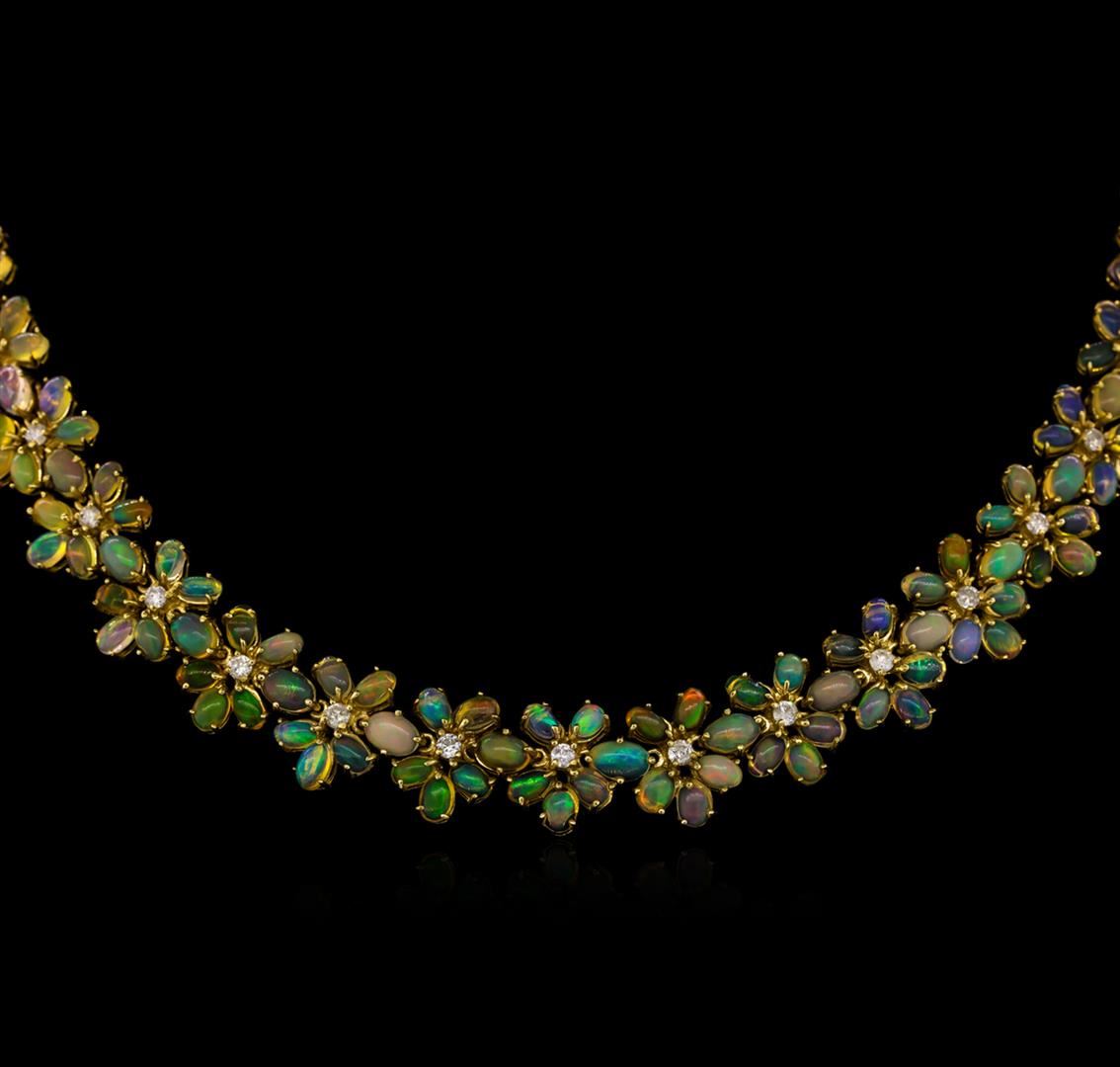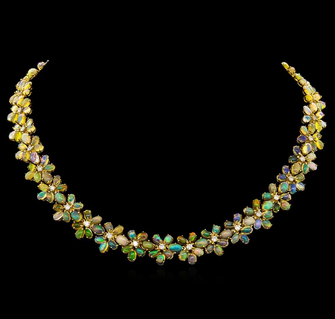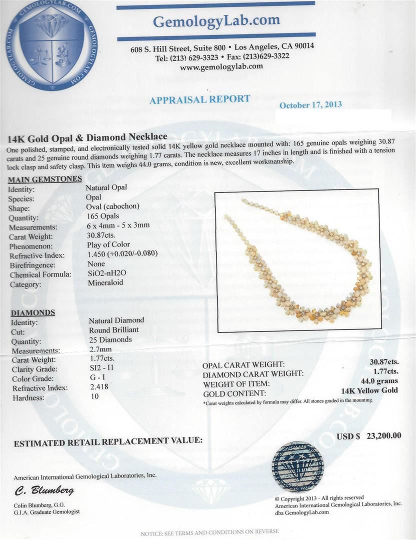 One Necklace featuring: 14KT white gold containing 165 opals with a total weight of 30.87ct and 25 diamonds with a total weight of 1.77ct. AIGL Appraised at $23,200.00.