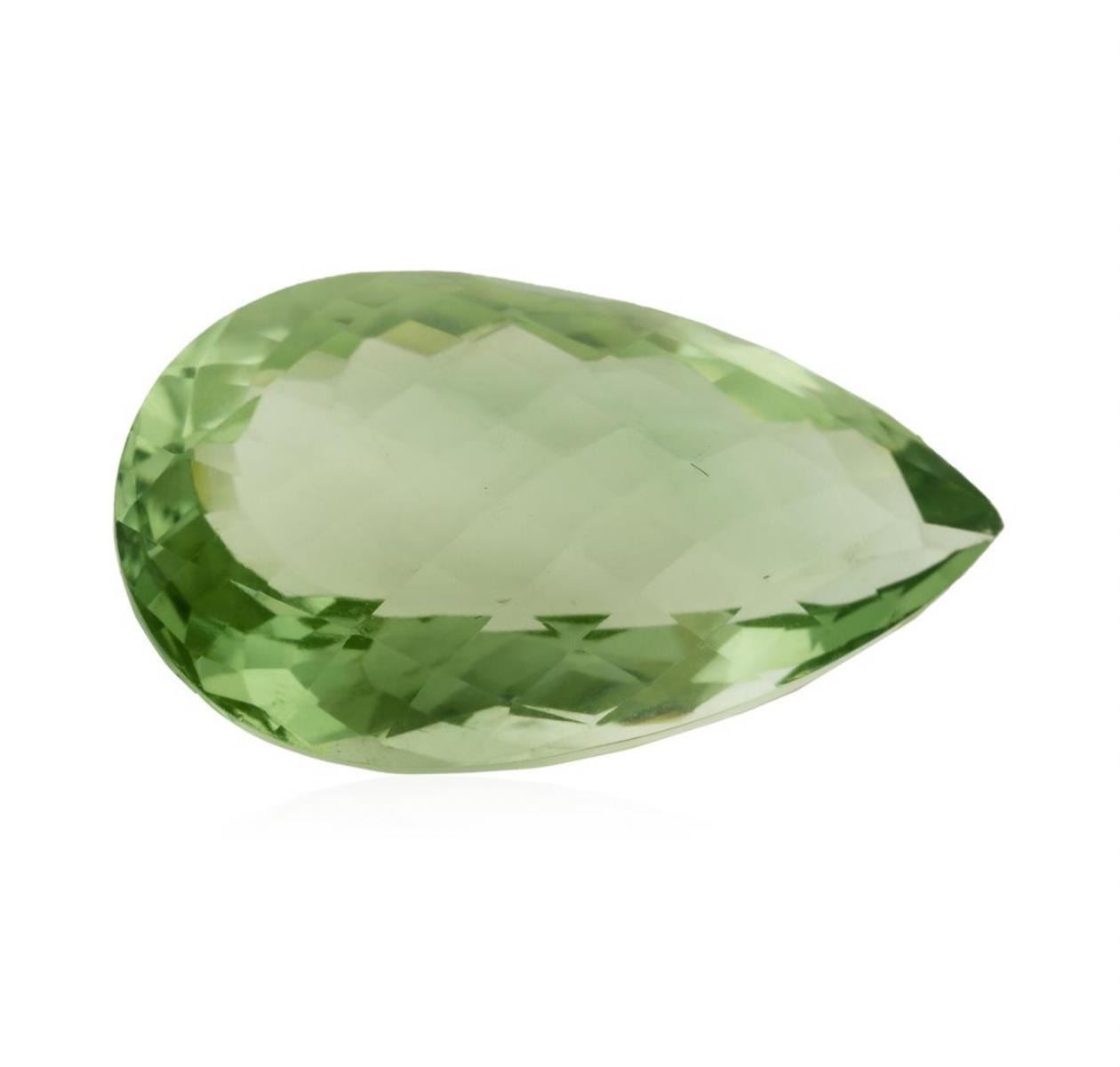 One natural pear cut green amethyst with an exact weight of 36.32ct., clarity is eye clean, green, medium light. Gemological Appraisals Services estimates the retail value at $726.4 GAS Appraised.