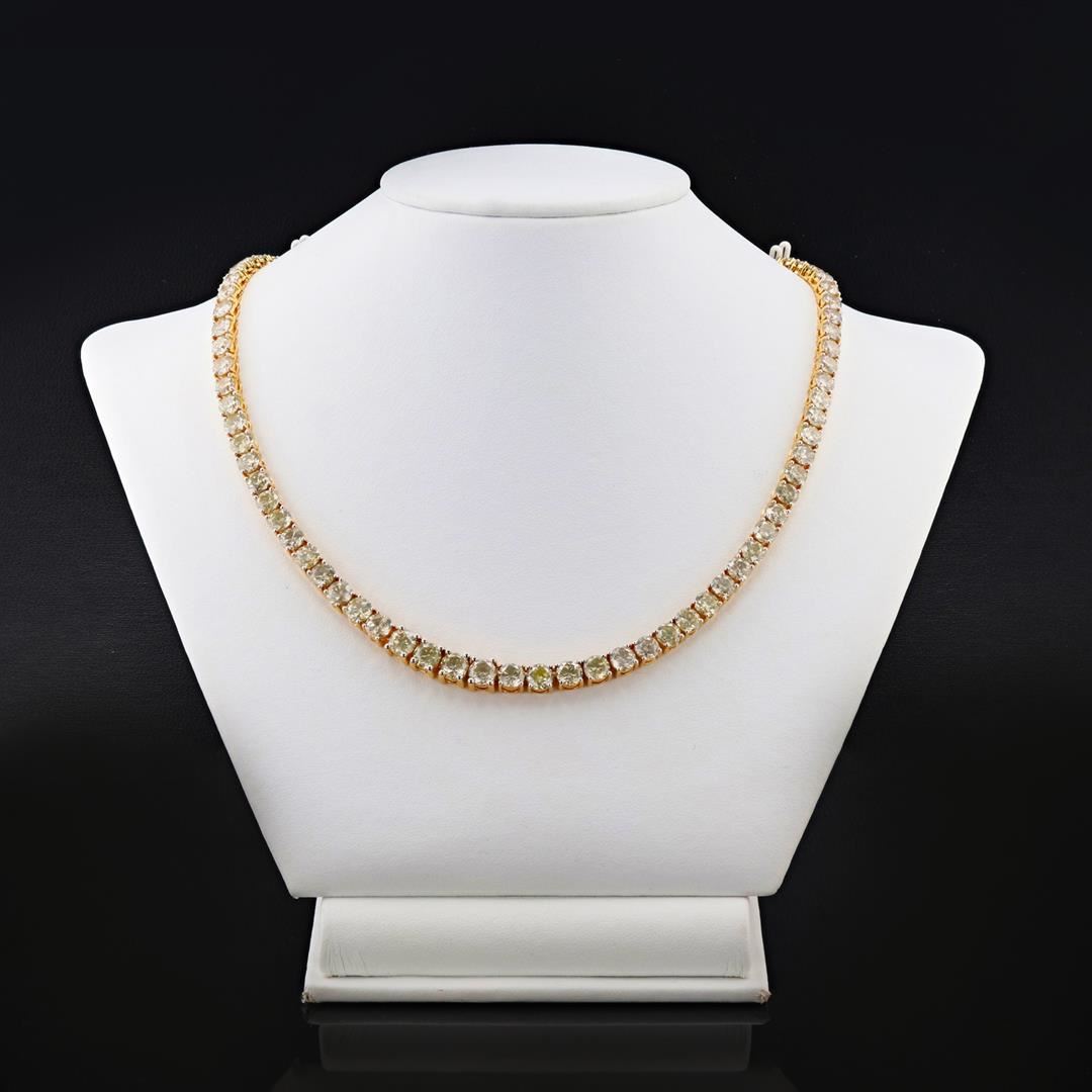 36.71ctw Diamond 18K Yellow Gold Necklace. Please see Photos and Description for all available information. This is a 36.71ctw diamond 18k yellow gold necklace. The diamond necklace weighs 17 inches in length and is crafted in 18k yellow gold. The diamonds are all round diamonds with clarity grade SI1-SI3. This diamond necklace is sure to impress anyone who receives it, as well as be a great gift for a loved one.
