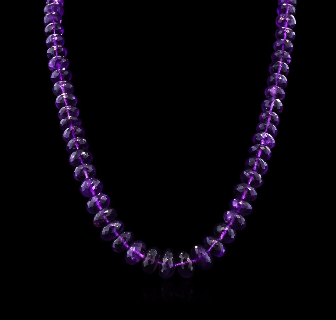 One necklace featuring amethyst beads with a total approximate weight of 370.00ct measuring 10.00 - 15.00mm. All faceted beads. Fine cutting/proportions. RBGS Appraised at $4,000.00.