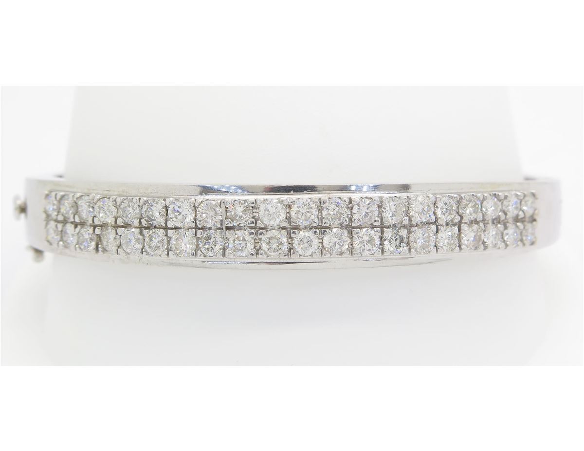 One tested 14K white gold diamond bracelet. Containing: 40 Round Brilliant Cut Diamonds. Clarity: I-SI, Color: G-I. Approximate total diamond weight: 4.00CTW. Diamonds are graded in the mounting, unless otherwise stated. Weight of bracelet: 31.9 grams. Size: 7".