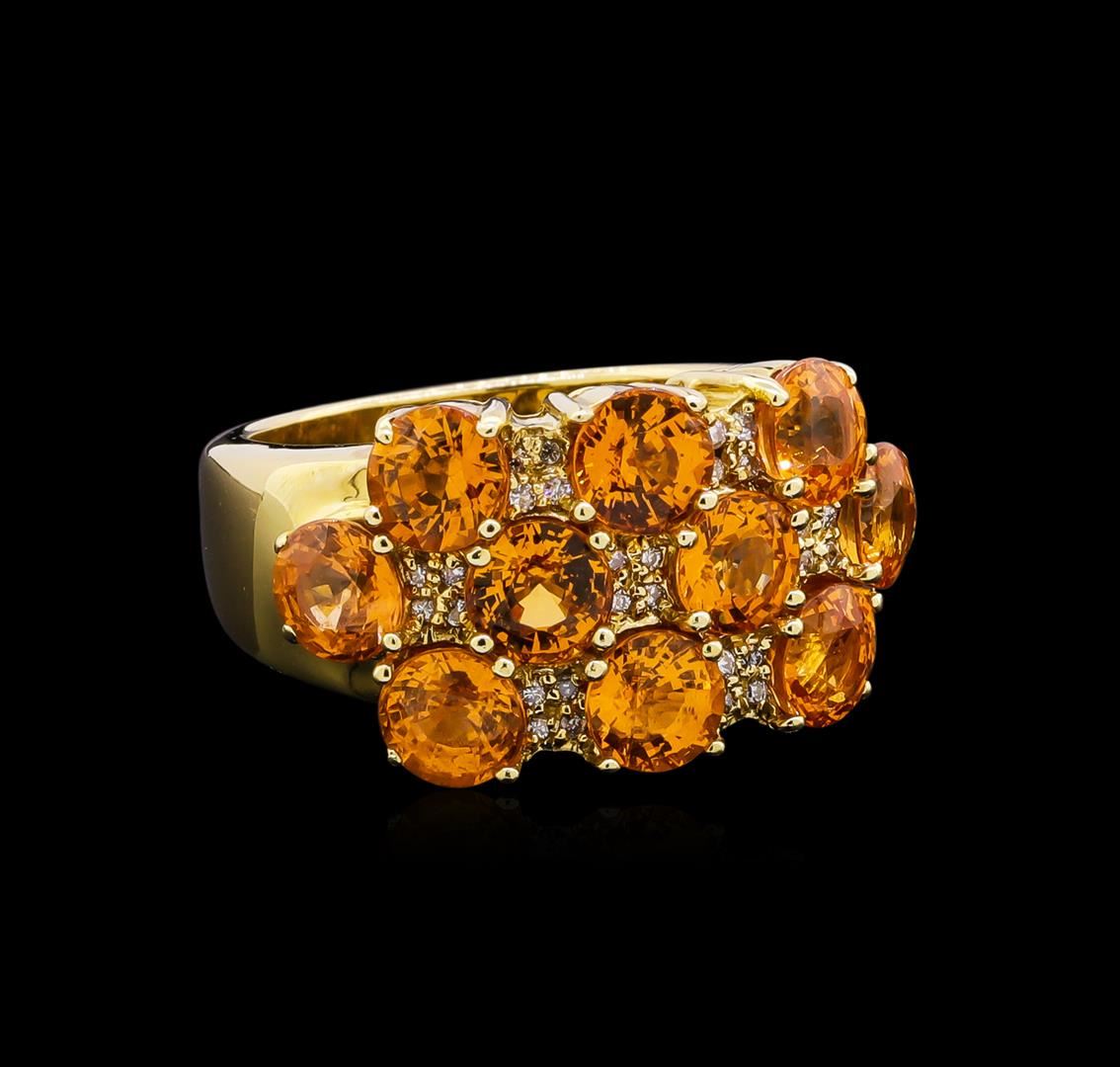 One ring featuring: 14KT yellow gold weighing 11.76 grams containing one orange sapphires with a total weight of 4.00ct and side diamonds with a total weight of 0.03ct.