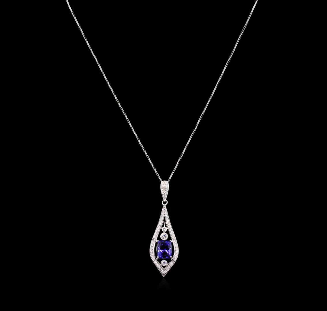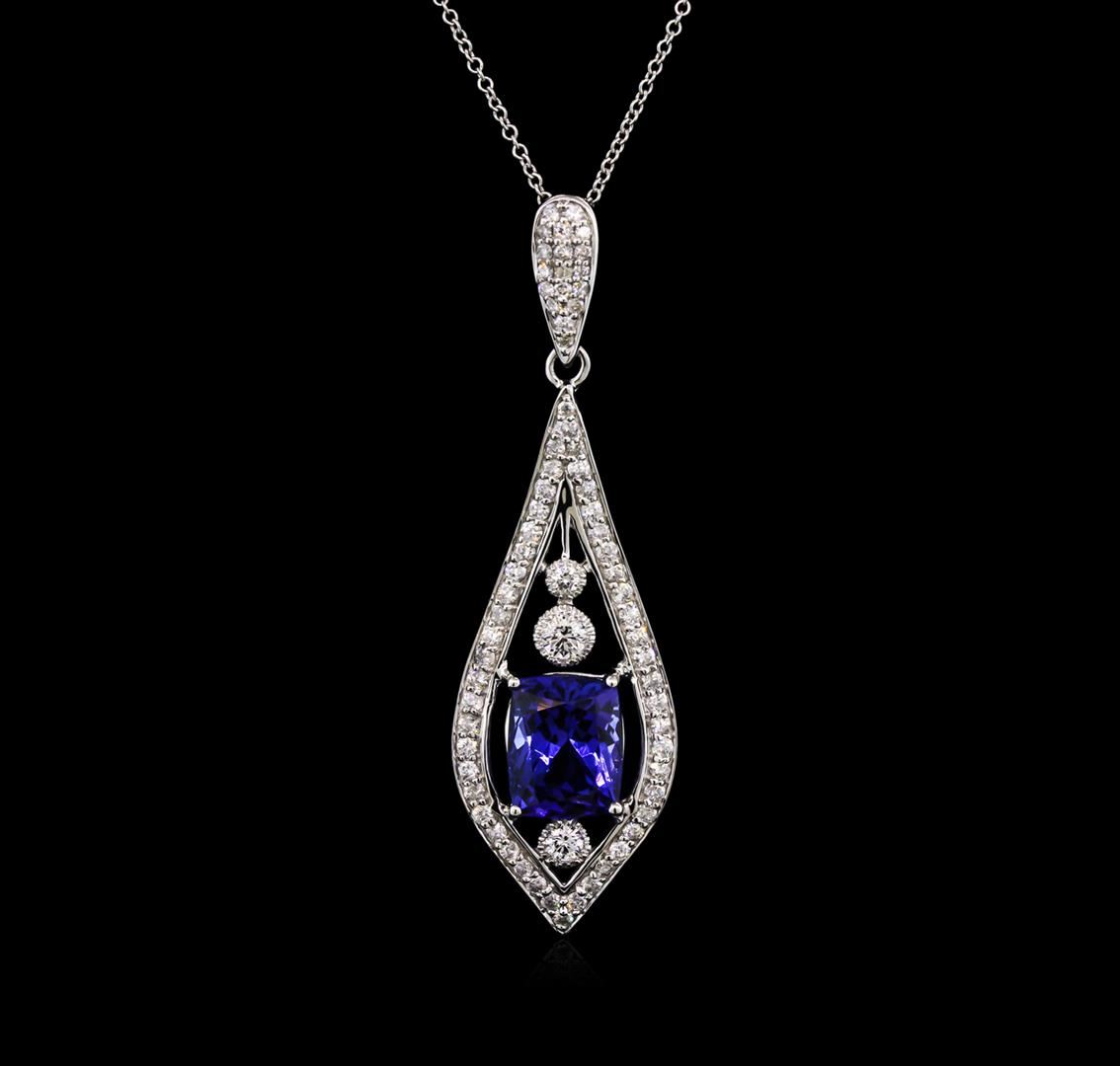 One pendant with chain featuring: 18KT white gold weighing 6.00 grams containing one tanzanite with a total weight of 4.00ct and diamonds with a total weight of 0.95ct.