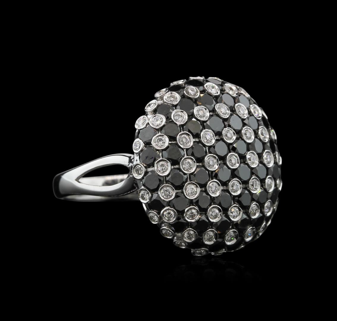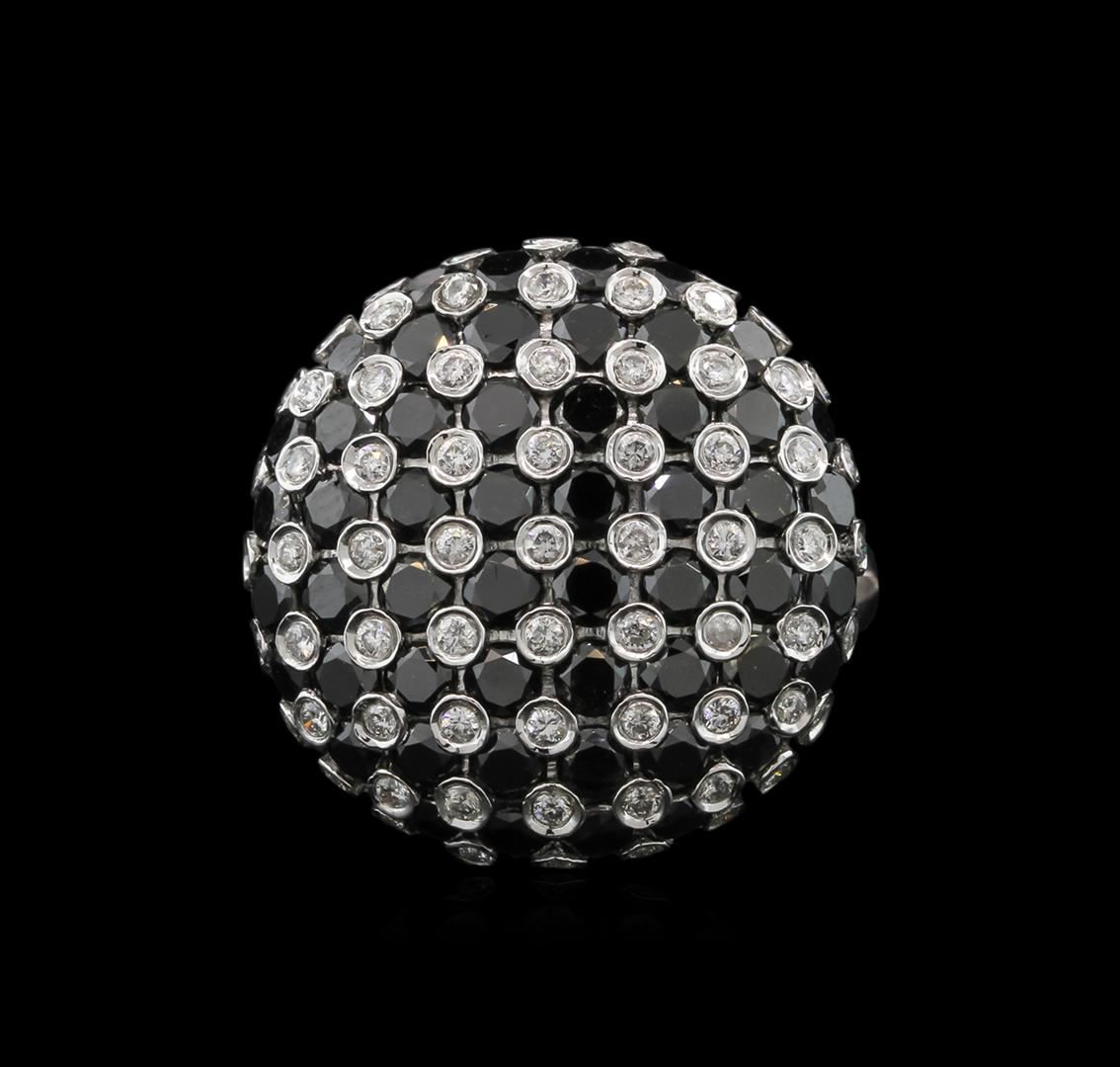 One ring featuring: 14KT white gold weighing 6.97 grams containing bezel set round black diamonds with a total weight of 3.00ct and bezel set round white diamonds with a total weight of 1.00ct.
