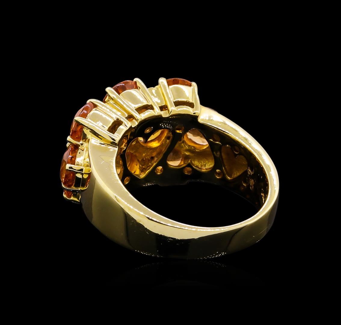 One ring featuring: 14KT yellow gold weighing 11.76 grams containing one orange sapphires with a total weight of 4.00ct and side diamonds with a total weight of 0.03ct.