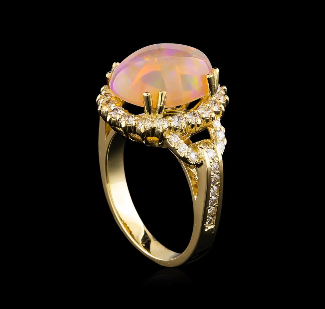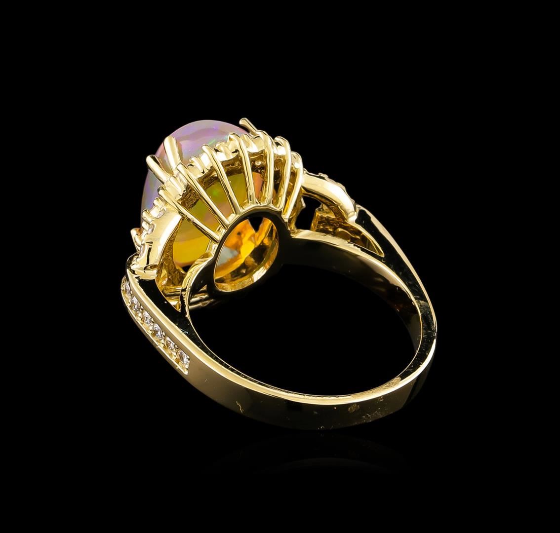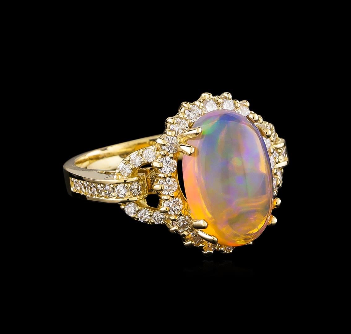 One ring featuring: 14KT Yellow Gold weighing 6.16 grams containing one Opal center stone with a total weight of 4.01ct and diamonds with a total weight of 0.86ct.