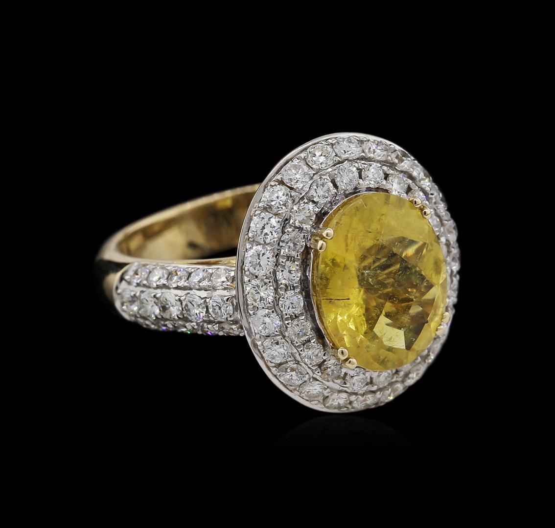 One ring featuring: 14KT yellow gold weighing 7.55 grams containing one yellow tourmaline with a total weight of 4.05ct and diamonds with a total weight of 2.07ct.