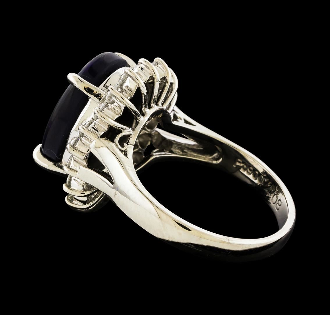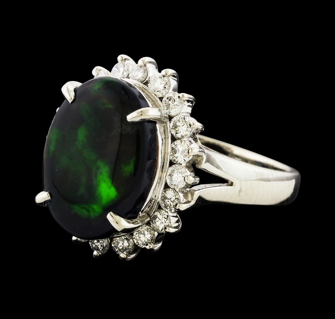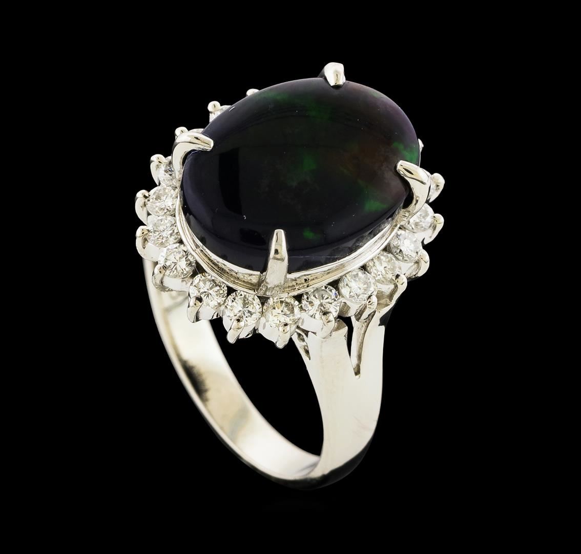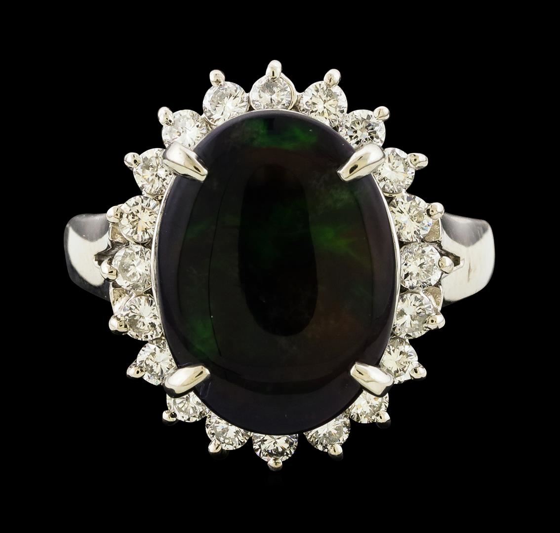 One ring featuring: Platinum containing Black Opal with a total weight of 4.08ct and Diamonds with a total weight of 0.67ct. Total Weight of Ring: 7.7 grams.