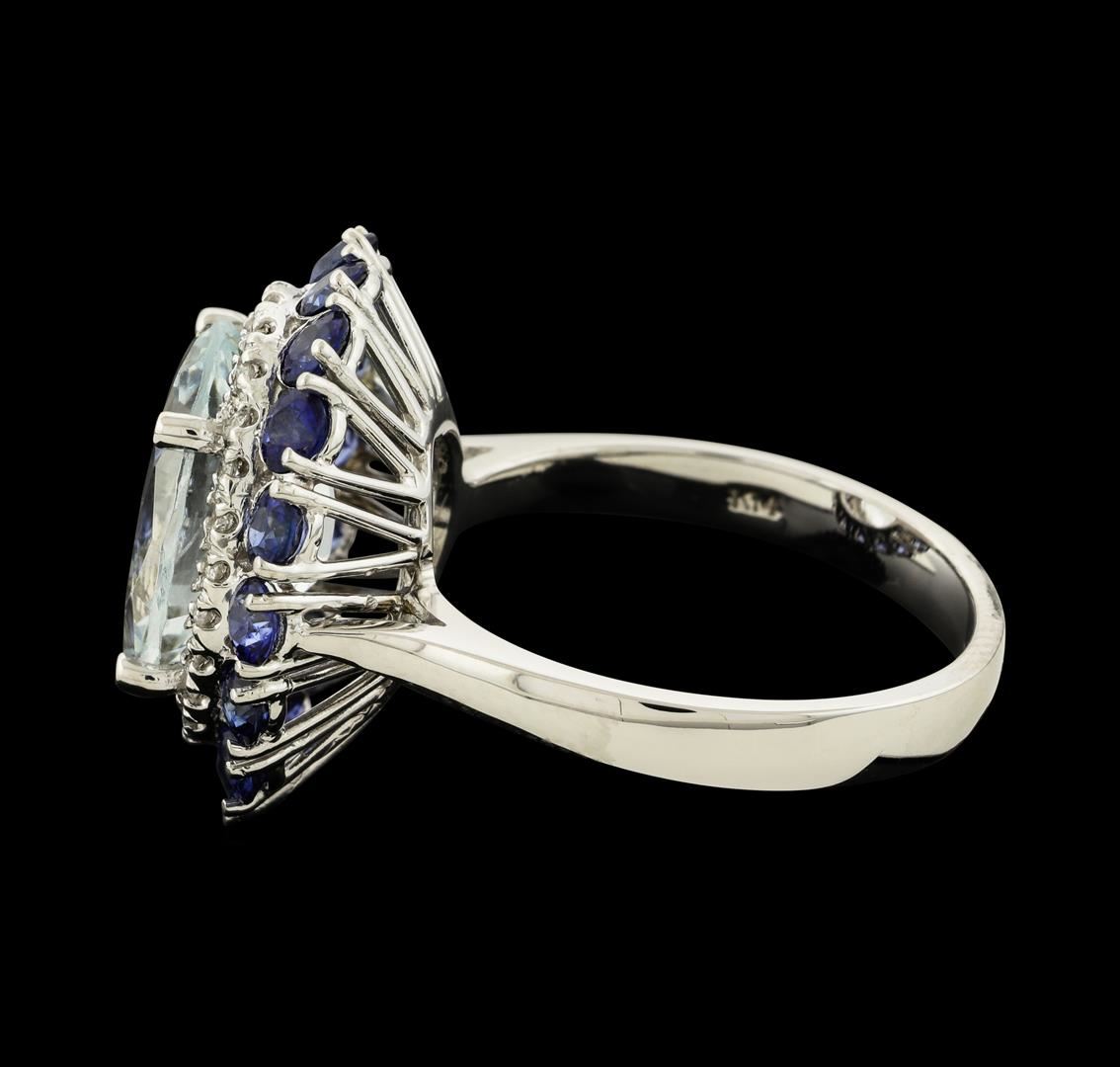 One ring : 14KT white gold weighing 5.29gm containing aquamarine with a total weight of 4.10ct, sapphire weighing 1.65ctw and diamonds weighing 0.20ctw.