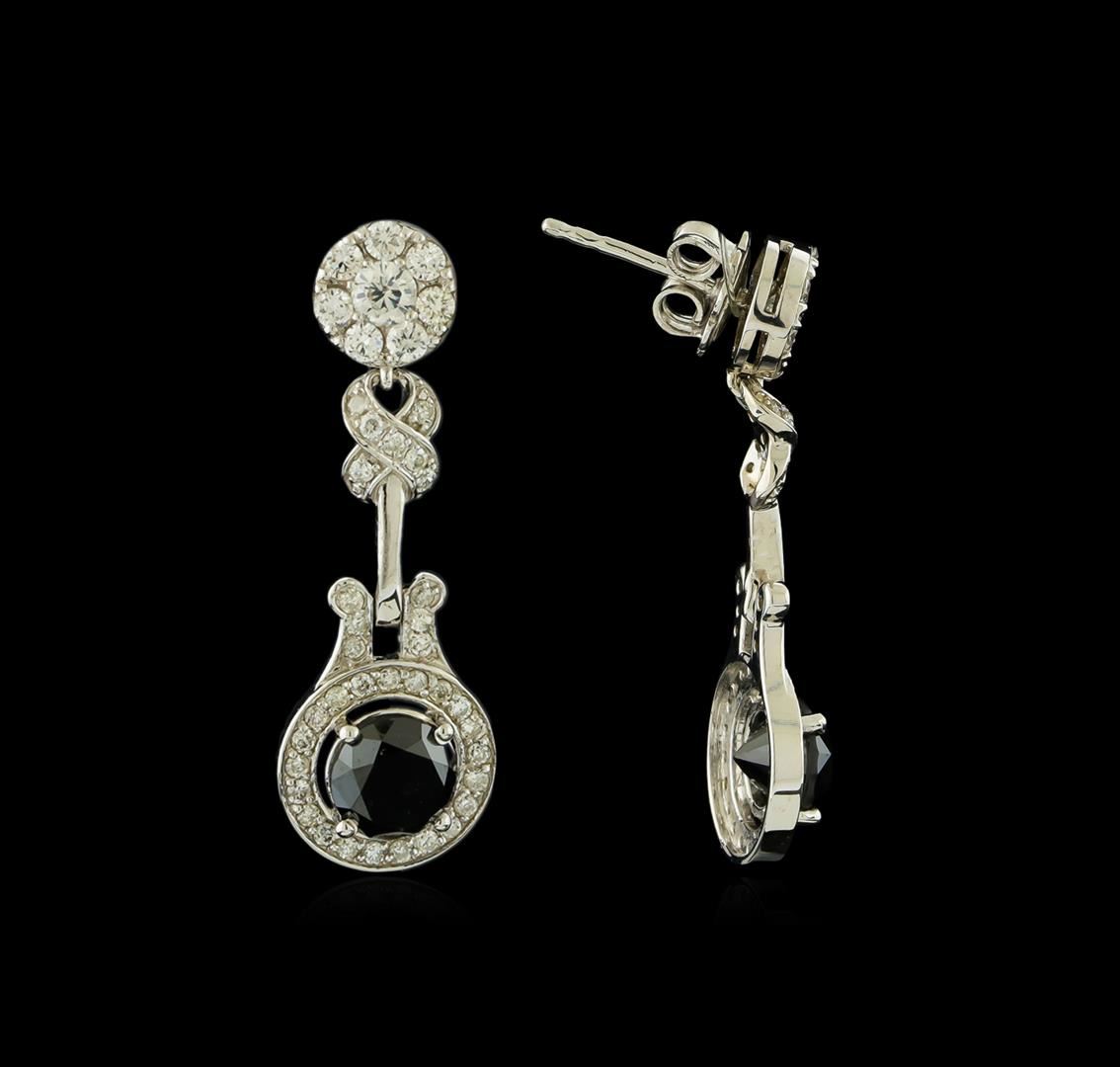One pair electronically tested 14KT white gold lady's combination cast & assembled fashion dangle earrings with friction posts with a bright polish finish. The featured pair of lady's dangle earrings have a drop of 33.2 millimeters in length. Identified with markings of "14K 585". Condition is new, good workmanship. Containing: Two prong set round brilliant cut diamonds, measuring 6.34 - 6.24 x 4.88mm (depth est.) , 18.00.%. GTCF approximate total weight of 2 Stones = 2.80ct. Colored gemstones are presumed to have been subjected to commonly used enhancement processes. Graded in the setting. Cut Fair Two prong set round brilliant cut diamonds, measuring 3.40 - 3.35 x 2.03mm (depth est.) approximate total weight of 2 Stones = 0.28ct. Graded in the setting. Clarity: VS-2 to SI-1. Color: H - I. Cut Good Fourteen prong set round brilliant cut diamonds, measuring 2.10 - 2.00 x 1.25mm (depth est.) approximate total weight of 14 Stones = 0.45ct. Graded in the setting. Clarity: SI-1 to SI-2. Color: H - I. Cut Very Good Sixty-Eight prong set round brilliant cut diamonds, measuring 1.40 - 1.25 x 0.82mm (depth est.) approximate total weight of 68 Stones = 0.59ct. Graded in the setting. Clarity: SI-1 to I-1. Color: H - I. Cut Good. Total Weight of Diamonds 4.12ct. Total Weight of Earrings 5.80gm. GAS Appraised at $7,045.00.