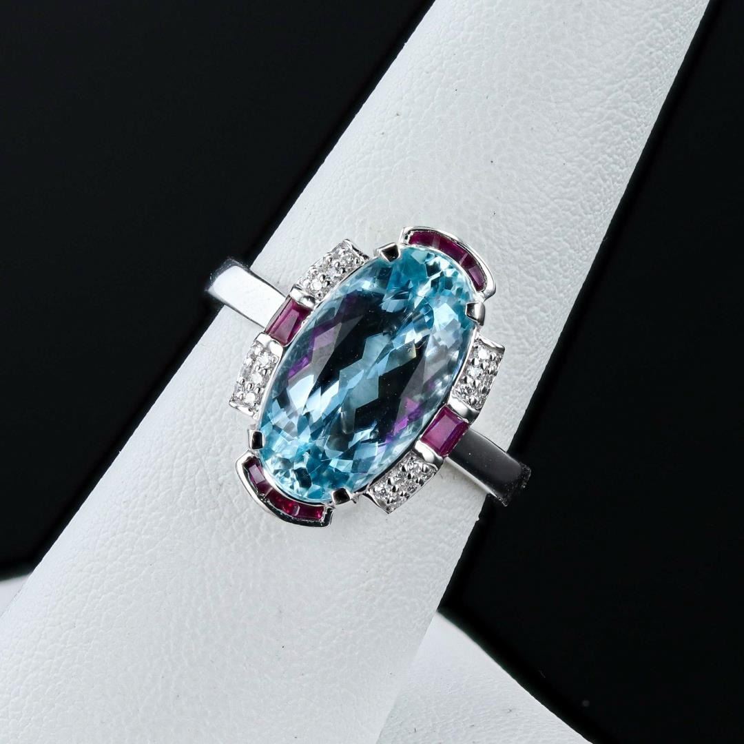 4.13 ctw Aquamarine, 0.44 ctw Ruby and 0.08 ctw Diamond Platinum Ring