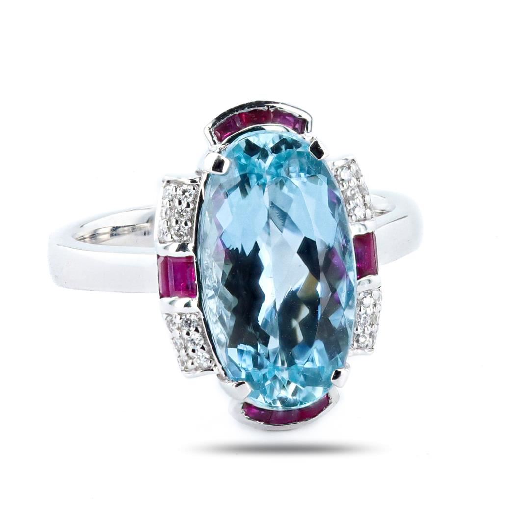 4.13 ctw Aquamarine, 0.44 ctw Ruby and 0.08 ctw Diamond Platinum Ring