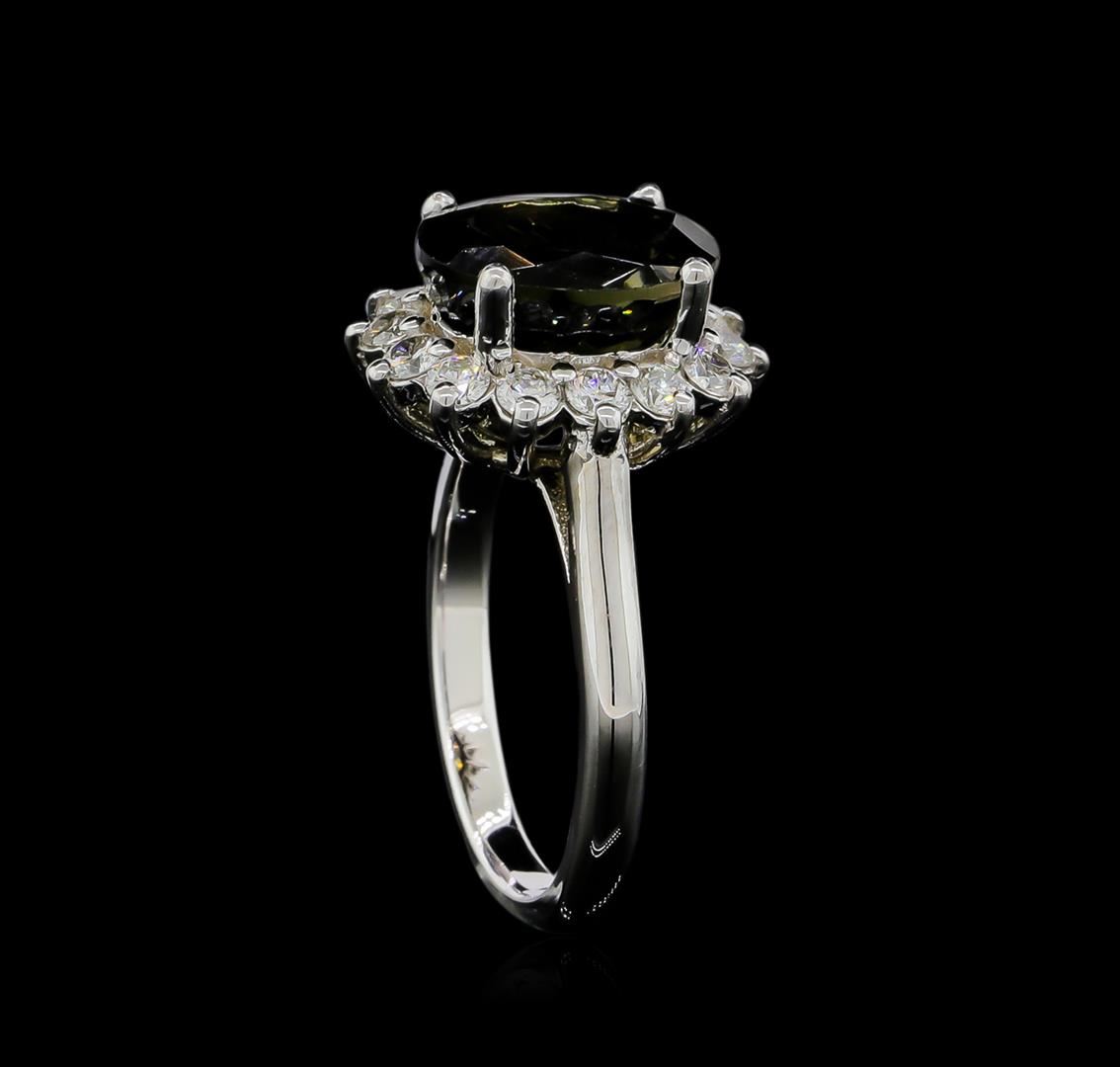 One ring featuring: 14KT white gold weighing 4.89 grams containing one green tourmaline with a total weight of 4.18ct and side diamonds with a total weight of 0.69ct.