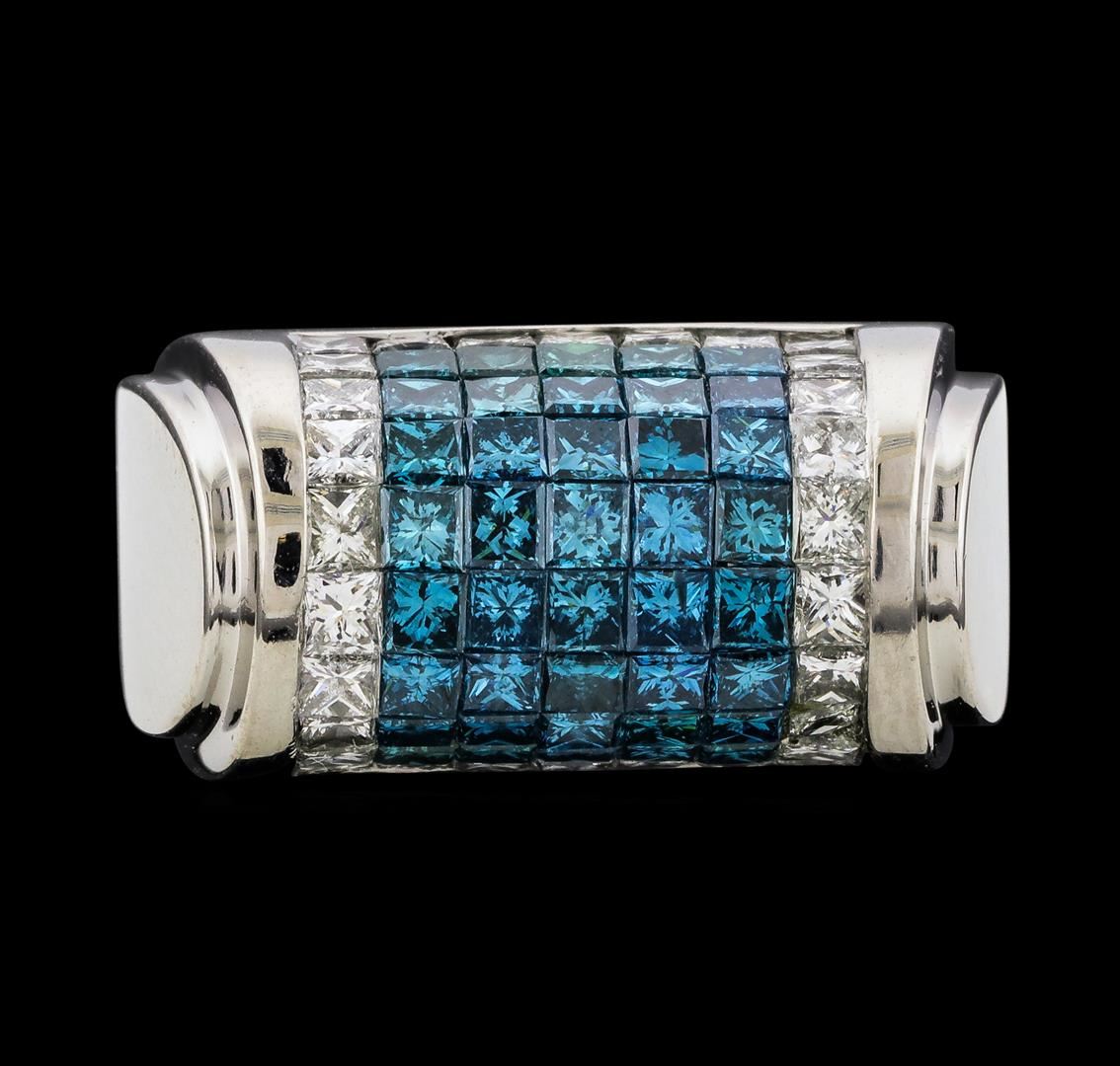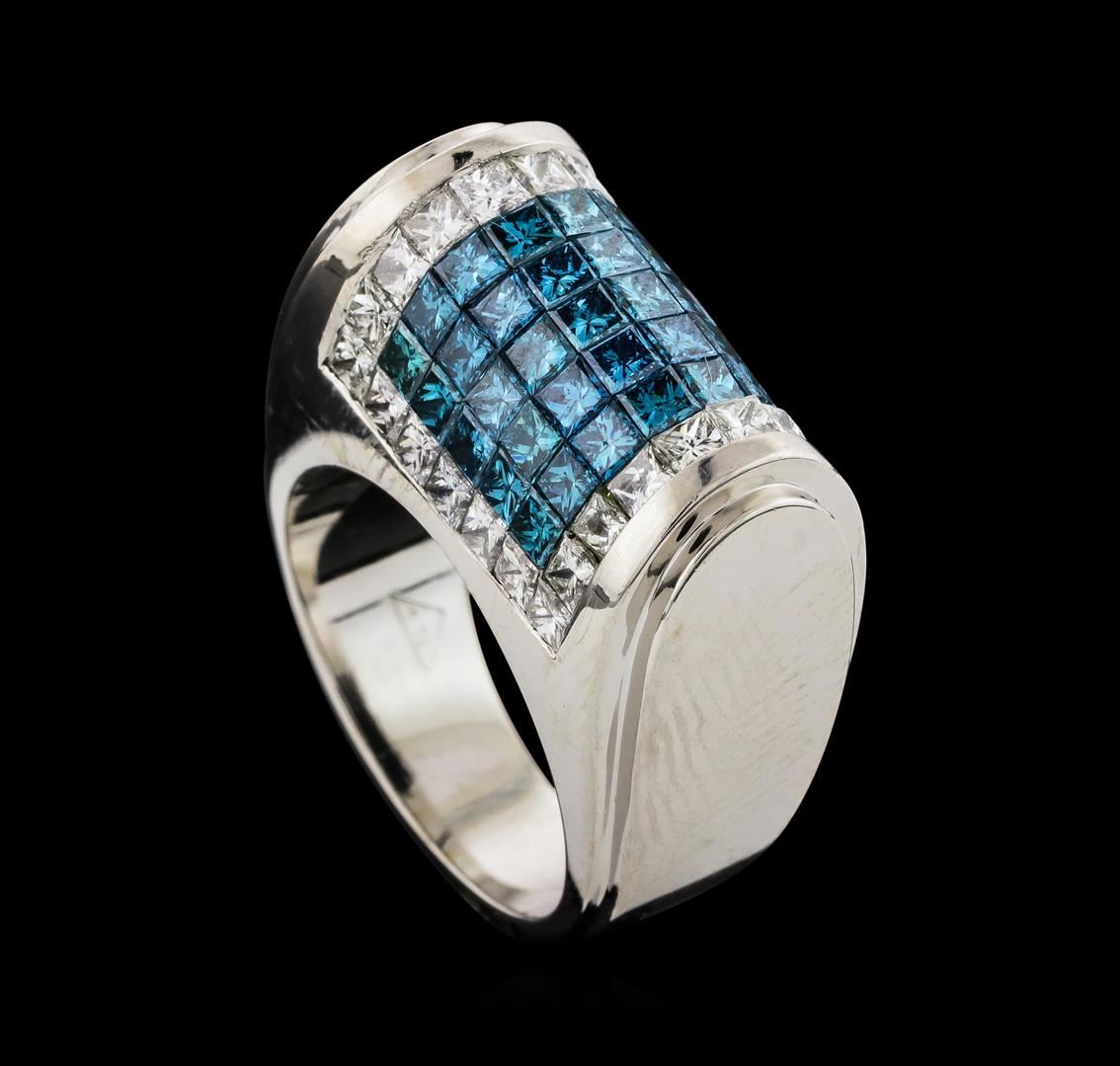 One electronically tested 18KT white gold lady's combination cast & assembled fashion saddle ring with a tapered shank with a bright polish finish. The featured lady's ring has a shank measuring 5.52 millimeters wide. Identified with markings of '18K'. Co GAS Appraised at $7,915.00.