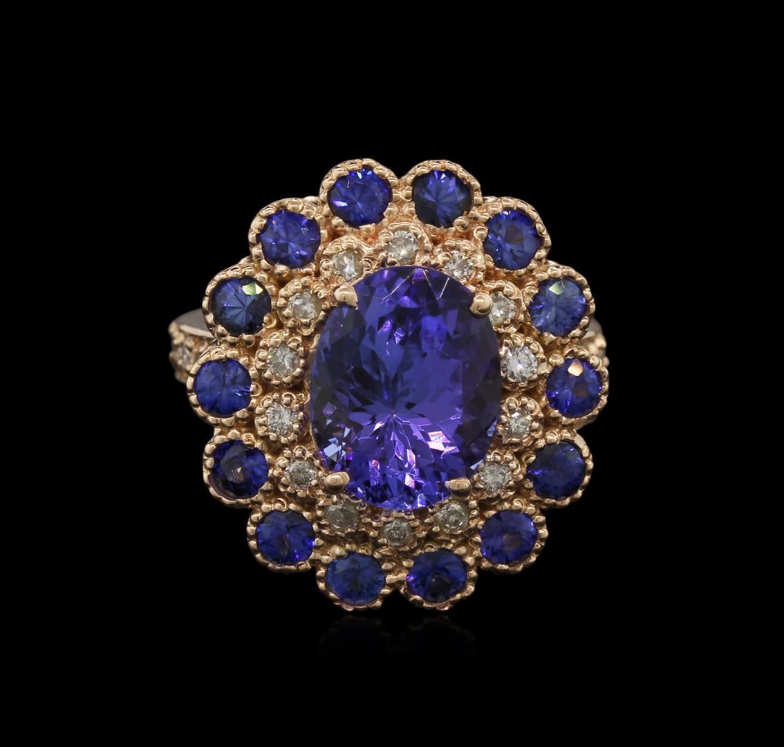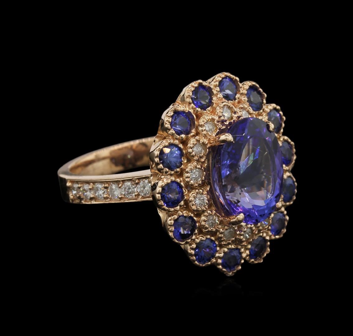 One electronically tested 14KT rose gold lady's cast fashion ring with a double halo with a bright polish with milgrain detailing finish. The featured lady's ring has a shank measuring 3.10 millimeters wide. Identified with markings of "K14". Condition is GAS Appraised at $8,755.00.