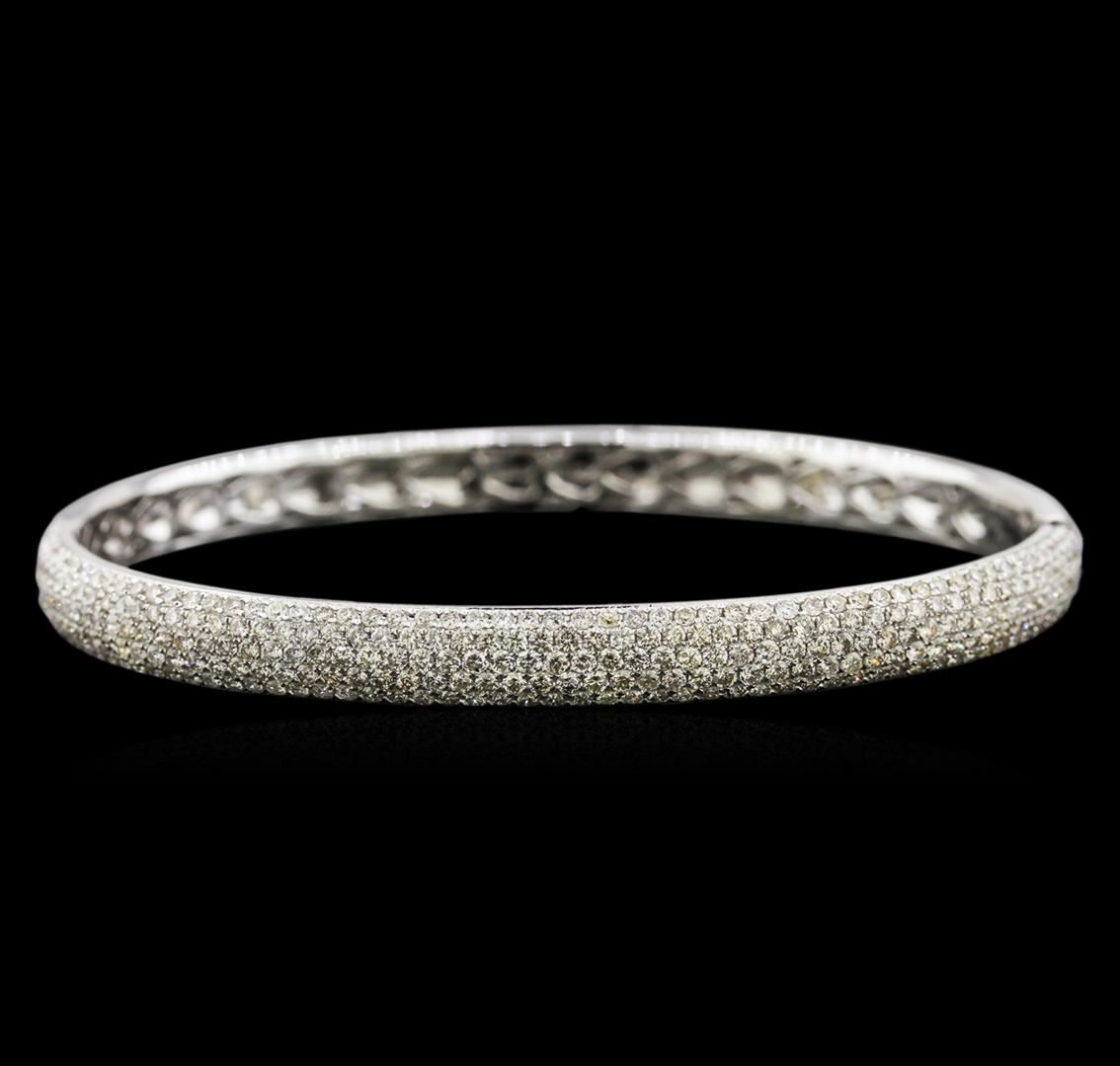 One electronically tested 14KT white gold lady's combination cast & assembled fashion bangle bracelet with a tongue clasp with foldover safety with a bright polish finish. The featured lady's bangle bracelet has five rows of diamonds and an internal circumference of 7 inches with a width of 6.5 millimeters. Condition is new, good workmanship. Containing: Two Hundred Ninety-Four prong set round brilliant cut diamonds, measuring 1.60 - 1.50 x 0.98mm (depth est.) approximate total weight of 294 Stones = 4.21ct. Graded in the setting. Clarity: VS-2 to SI-2. Color: G - I. Cut Very Good. Total Weight of Diamonds 4.21ct. Total Weight of Bangle Bracelet 19.10gm. GAS Appraised at $15,360.00.