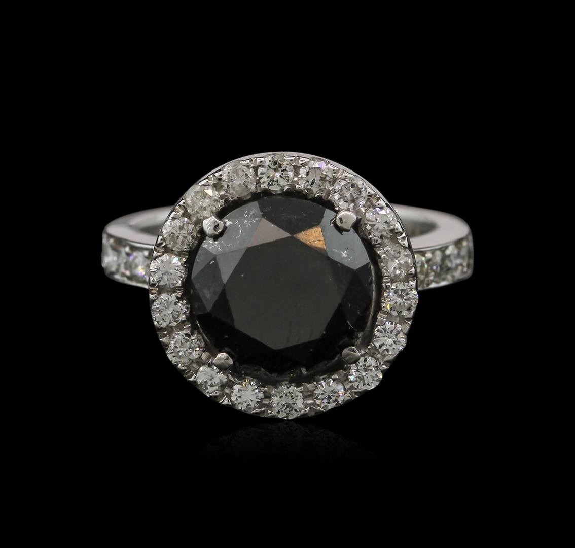 One ring featuring: 14KT white gold weighing 5.44 grams containing one prong set round cut black diamond center stone with a total weight of 3.72ct and prong and pave set round white diamonds with a total weight of 0.50ct.