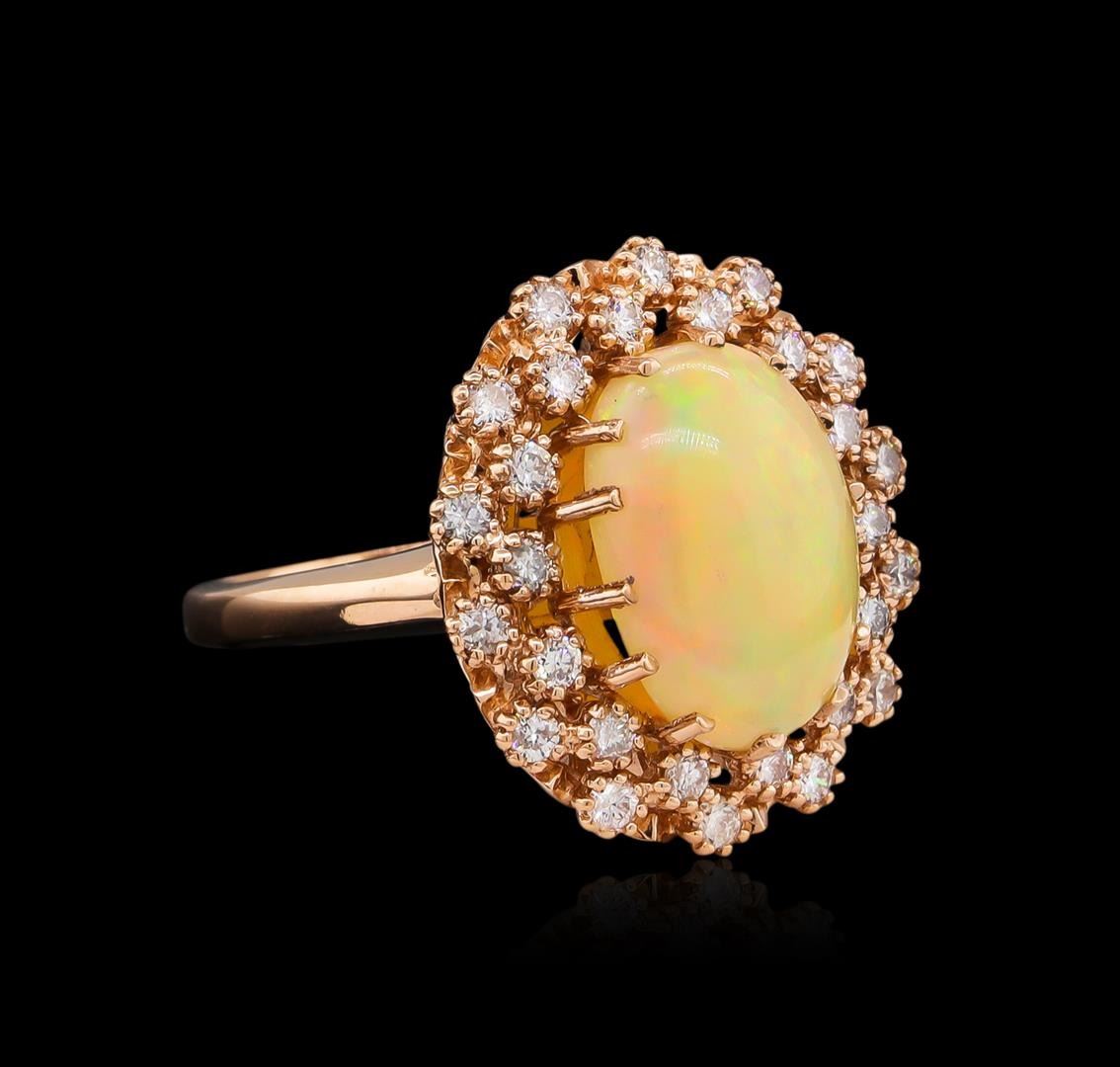 One ring featuring: 14KT rose gold weighing 8.35 grams containing one opal with a total weight of 4.22ct and side diamonds with a total weight of 0.70ct.