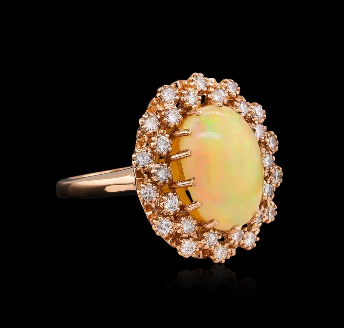 One ring featuring: 14KT rose gold weighing 8.35 grams containing one opal with a total weight of 4.22ct and side diamonds with a total weight of 0.70 ct.