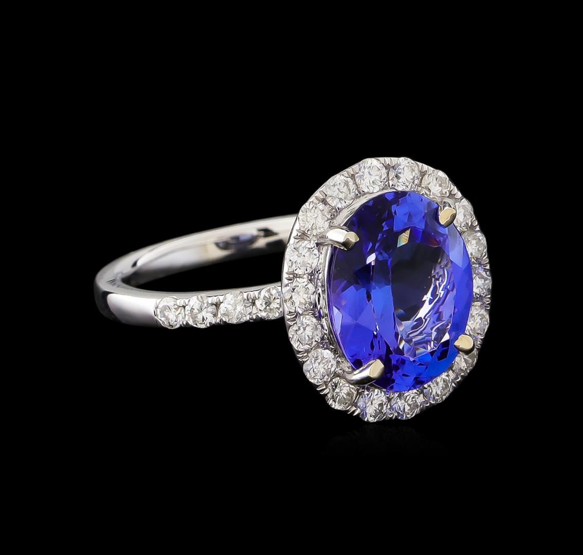 One electronically tested 14KT white gold ladies cast tanzanite and diamond ring with a bright polish finish. The featured tanzanite is set within a diamond bezel supported by a diamond set under gallery supported by diamond set shoulders, completed by a two millimeter wide band. Trademark is Orianne. Identified with markings of "14K". Condition is new, good workmanship. Containing: One prong set oval mixed cut natural tanzanite, measuring 11.35 x 9.20 x 5.42mm, 6%. bulge factor, approximate weight of 4.22ct., clarity is eye clean, type I, medium dark, very slightly grayish, bluish violet color, (GIA bV 6/3), cut is good. Transmitting light with no distortion, transparent. Graded in the setting. Tanzanite is a very rare gemstone that is only found in the country of Tanzania. Originally discovered in 1967. Tiffany & Company, named the stone Tanzanite. It is found in the Usumburu Mountains that border the Umba Valley of northern Tanzania. Tanzanite occurs in gray, brown, violet, blue, reddish-purple, & green. The gem is interesting because of its exceptional pleochroism. Rotated in different directions a tanzanite will exhibit multiple changes of color. Tanzanite has a low tolerance to ultrasonic cleaning, and should not be cleaned using this method. Forty prong set round brilliant cut diamonds, measuring 2.00 - 1.80 x 1.14mm (depth est.) approximate total weight of 40 Stones = 1.10ct. Graded in the setting. Clarity: I-1 to I-2. Color: G - I. Total Weight of Colored Stones 4.22ct. Total Weight of Diamonds 1.10ct. Total Weight of Ring 4.74gm. AIG Appraised at $12,235.00.