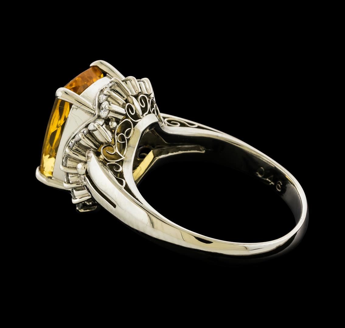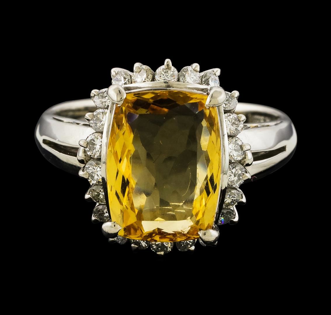 One ring featuring: Platinum containing Imperial Topaz with a total weight of 4.24ct and Diamonds with a total weight of 0.46ct. Total Weight of Ring: 7.9 grams.