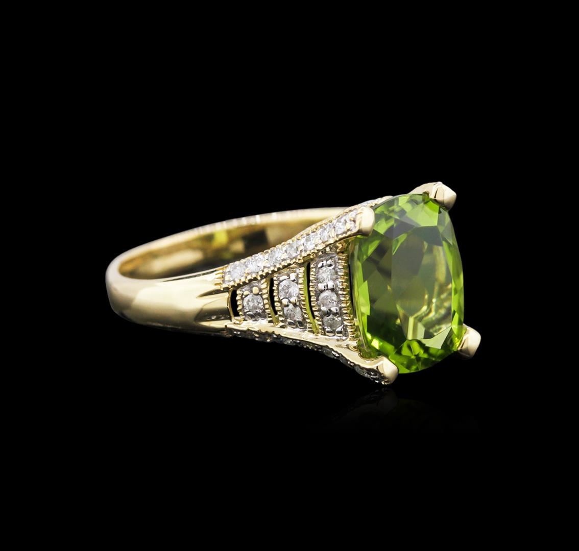 One ring featuring: 14KT yellow gold weighing 3.69 grams containing one peridot center stone with a total weight of 4.24ct and diamonds with an approximate total weight of 0.40ct.