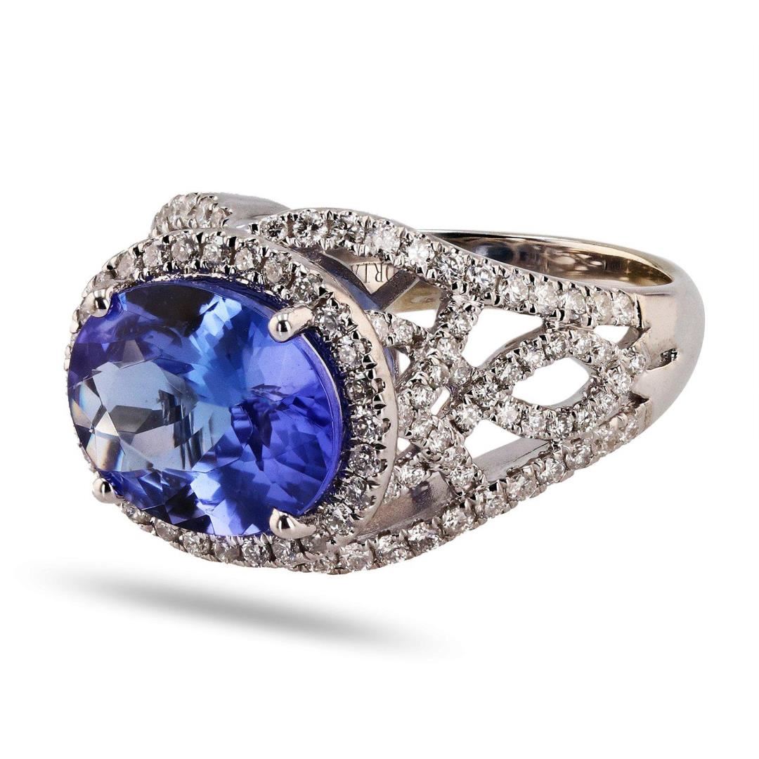 DESCRIPTION: ONE 14K WHITE GOLD LADY'S CUSTOM MADE DIAMOND & TANZANITE RING. 8.26 GR TW. CONTAINING: 1 â€" MAIN CENTER GEMSTONE(S): IDENTITY : ONE CENTER NATURAL TANZANITE SET IN 4 PRONGS SETTING. CARAT WEIGHT : 4.26 CTS. SHAPE & MEASUREMEMT : OVAL CUT. APPROX : 12.50 X 9.50 MM. QUALITY : FINE MEDIUM BLUE/PURPLE , FINE CUT & CLARITY. 2 â€" ADJACENT GEMSTONES: IDENTITY : NATURAL DIAMONDS. SHAPE : ROUND BRILLIANT CUT. CARAT WEIGHT : 0.93 CT. QUALITY : G/H COLOR , SI2/3 CLARITY. ALL FINE CUTTING AND PROPORTIONS. ALL PRONGS SETTINGS STYLE. TOTAL GEMSTONES WEIGHT : 5.19 CTS TW. Size: 7