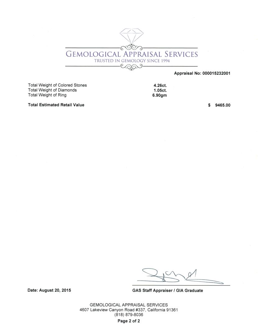 Not all Jewelry, watches or loose stones are appraised and the appraisals are provided for bidders only in certain instances at the discretion of SAA. Our appraisals are conducted by independent third-party appraisal firms. Such firms may be certified GIA Gemologists or have education in the industry or alternative certifications. Appraisals should be used for verification of gemstone and/or metal weight, size, and grade only, not actual value for resale or insurance purposes. Appraisal value should be not considered for actual value, as price varies greatly from retail locations and other merchants in different geographic locations. All Items auctioned by SAA should not be purchased with a view or expectation toward resale for appraisal price given, or to make a profit. The ultimate value for which an item can be resold may vary drastically from the appraisals listed by SAA.