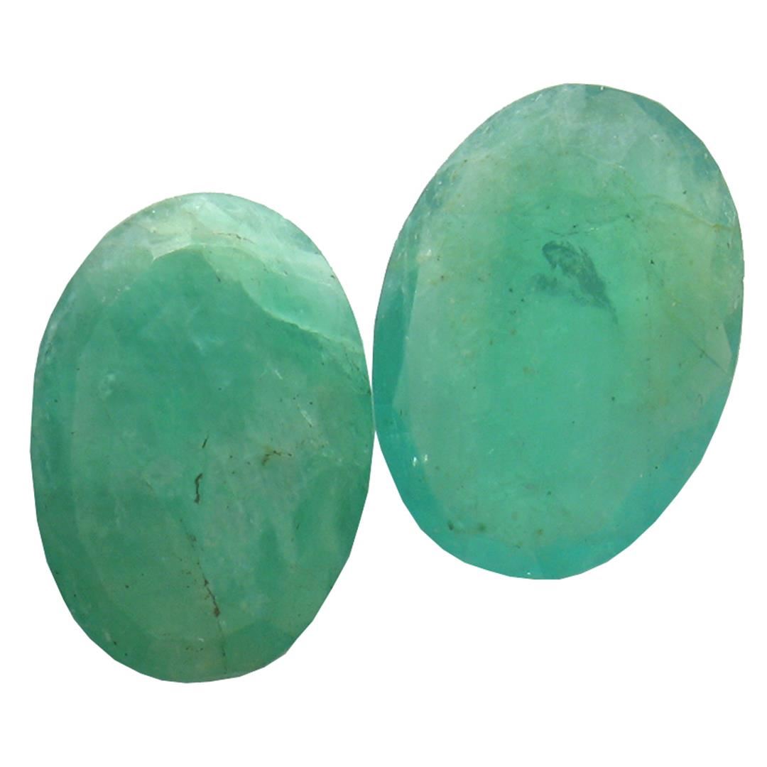 Two oval mixed cut natural emeralds, measuring 11.88 x 8.40 x 3.10mm, approximate total weight of 4.28ct., clarity is heavily included, type III, medium dark, very slightly grayish, green color, (GIA G 6/3), cut is good. Indications of multiple laboratory enhancements, including high temperature heat treatment. Westfield Appraised at $1,960.00.