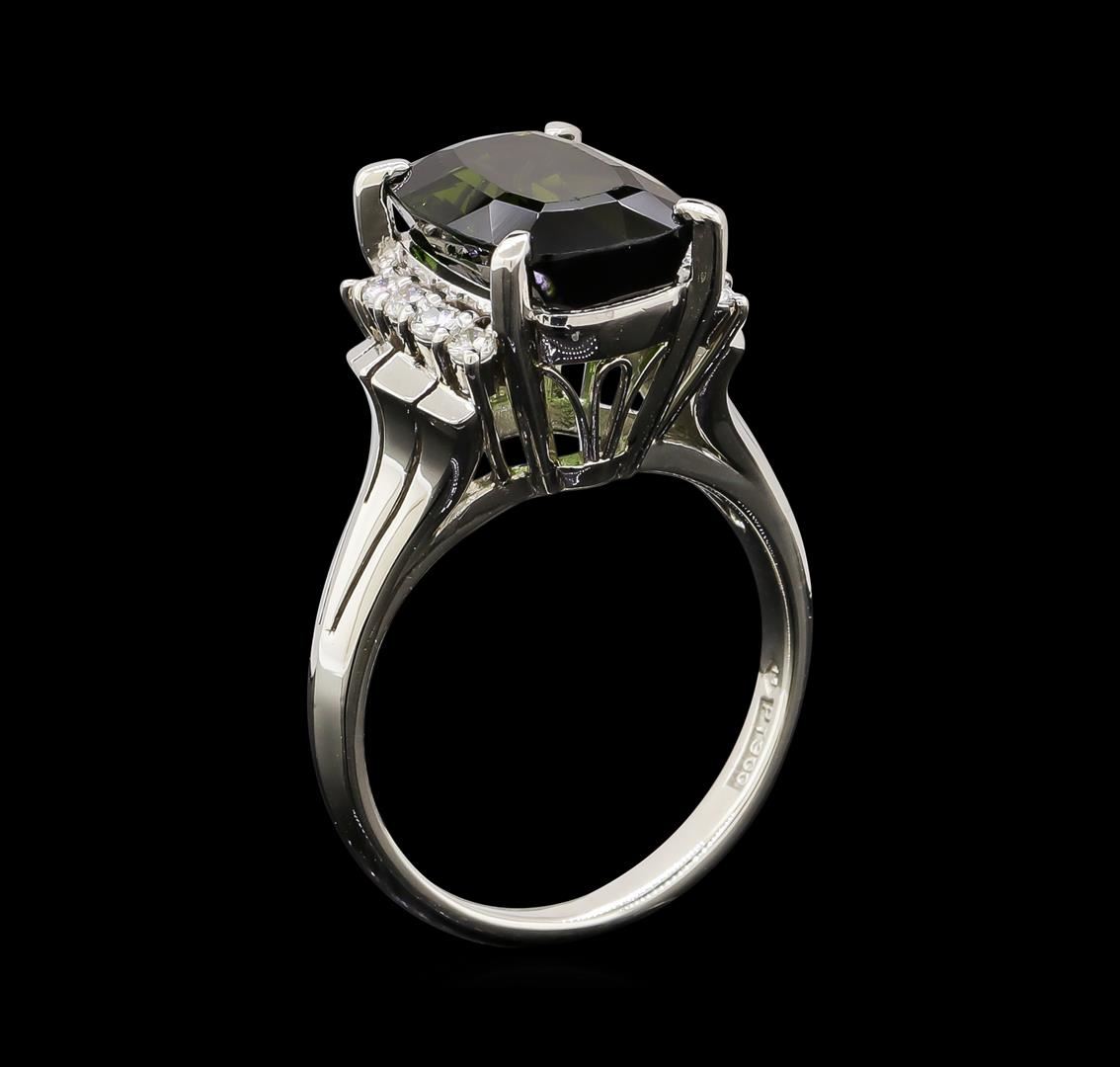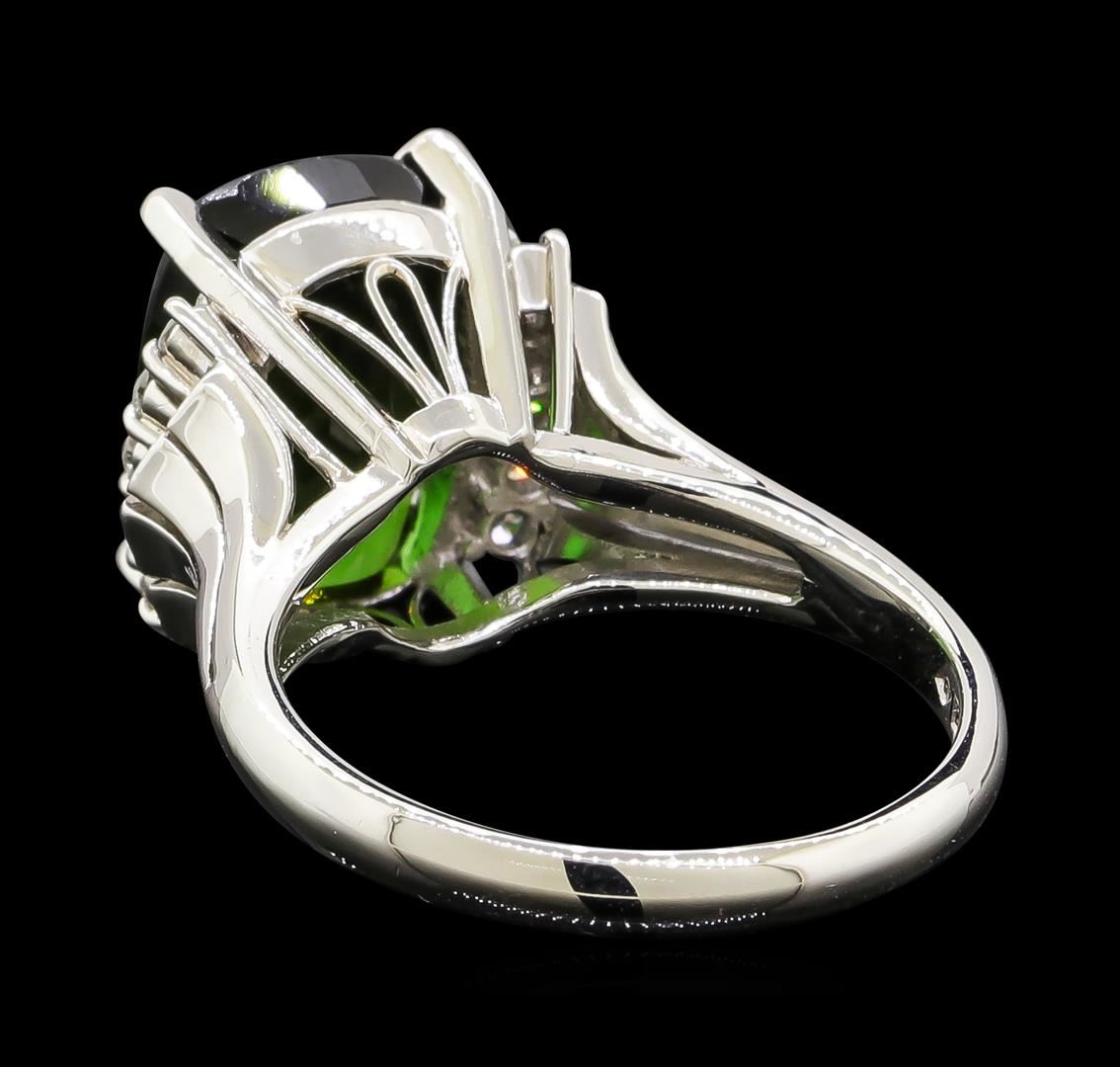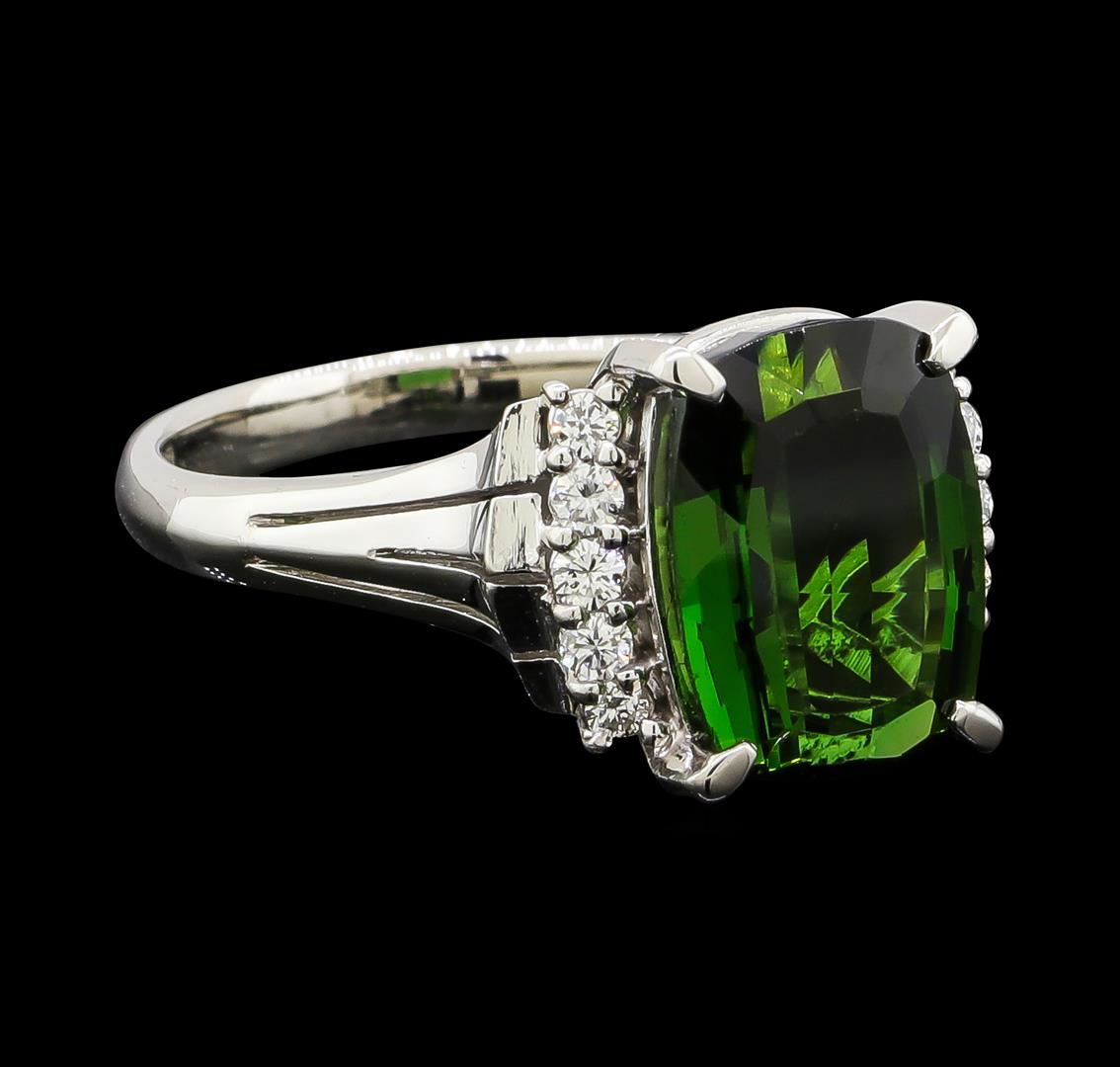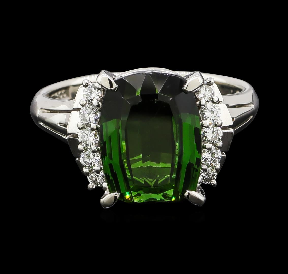 One ring featuring: Platinum containing Tourmaline with a total weight of 4.29ct and Diamonds with a total weight of 0.20ct. Total Weight of Ring: 7.9 grams.