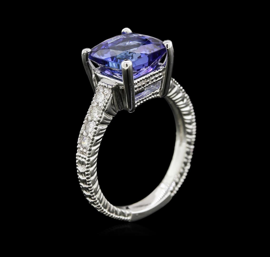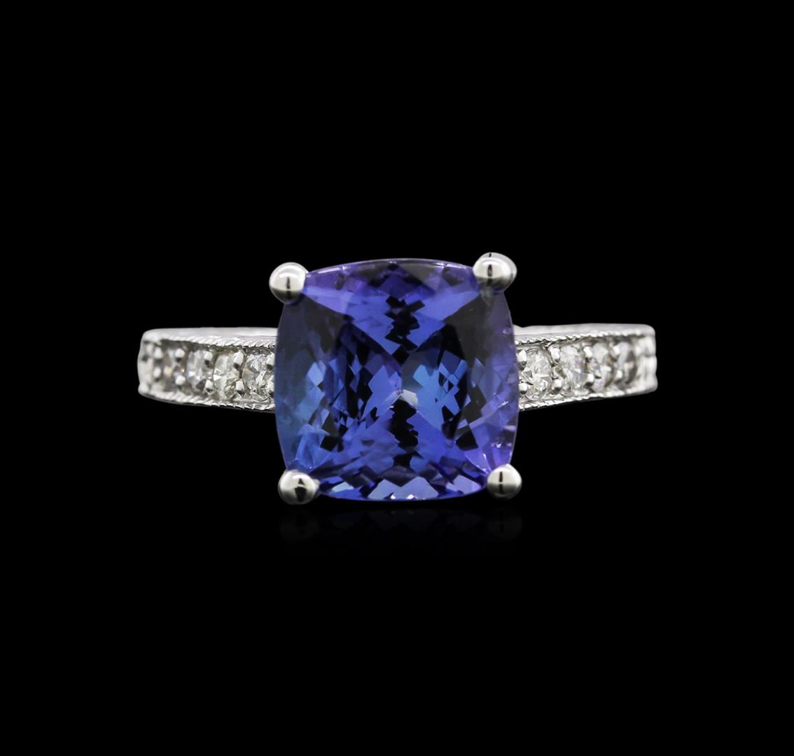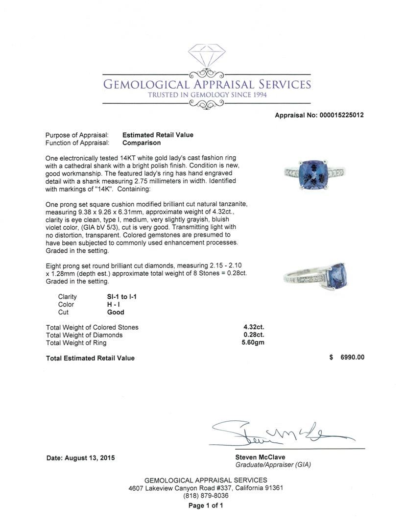 One electronically tested 14KT white gold lady's cast fashion ring with a cathedral shank with a bright polish finish. The featured lady's ring has hand engraved detail with a shank measuring 2.75 millimeters in width. Identified with markings of "14K". C GAS Appraised at $6,990.00.