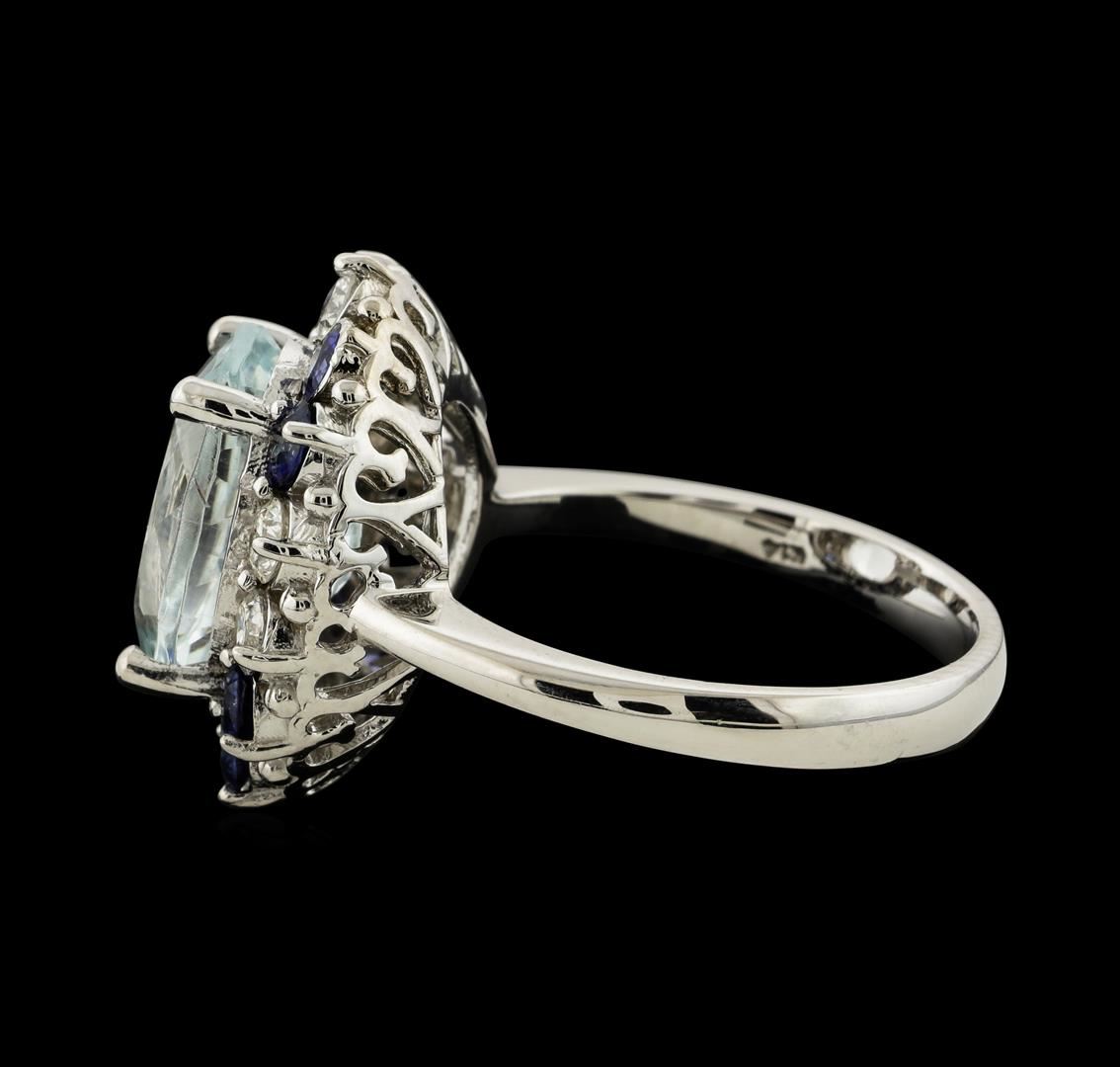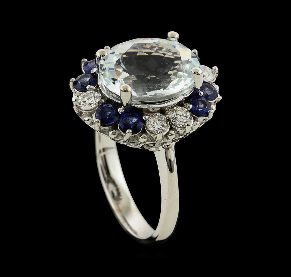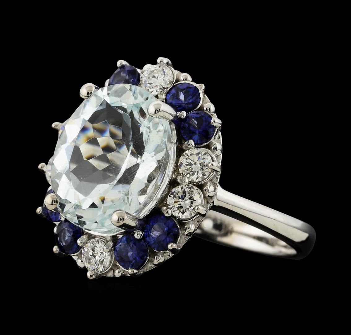 One ring : 14KT white gold weighing 5.14gm containing aquamarine with a total weight of 4.33ct, sapphire weighing 0.81ctw and diamonds weighing 0.47ctw.