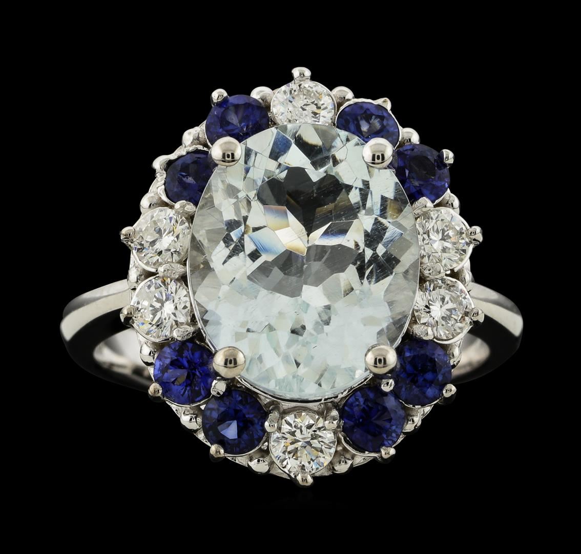 One ring : 14KT white gold weighing 5.14gm containing aquamarine with a total weight of 4.33ct, sapphire weighing 0.81ctw and diamonds weighing 0.47ctw.