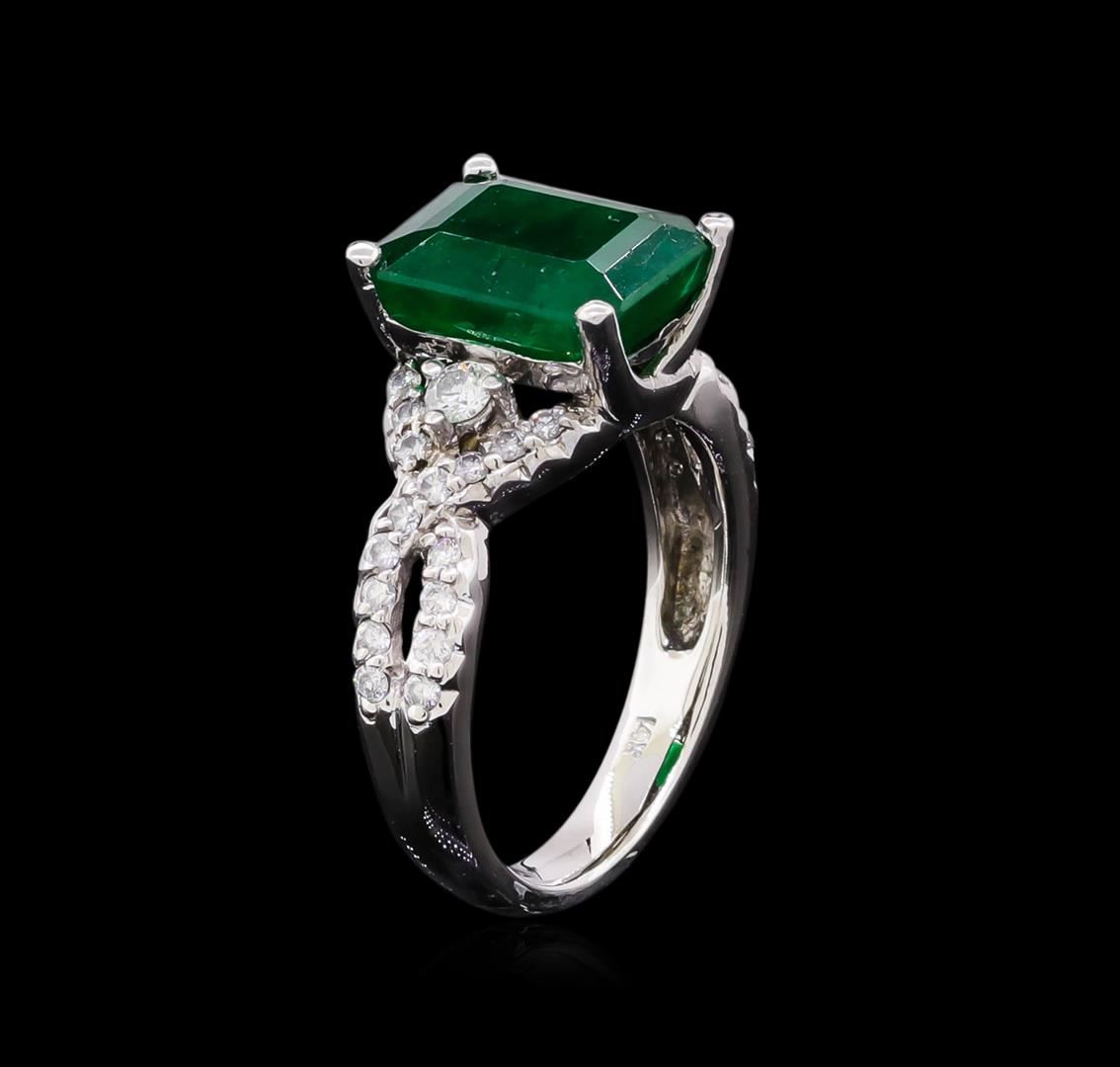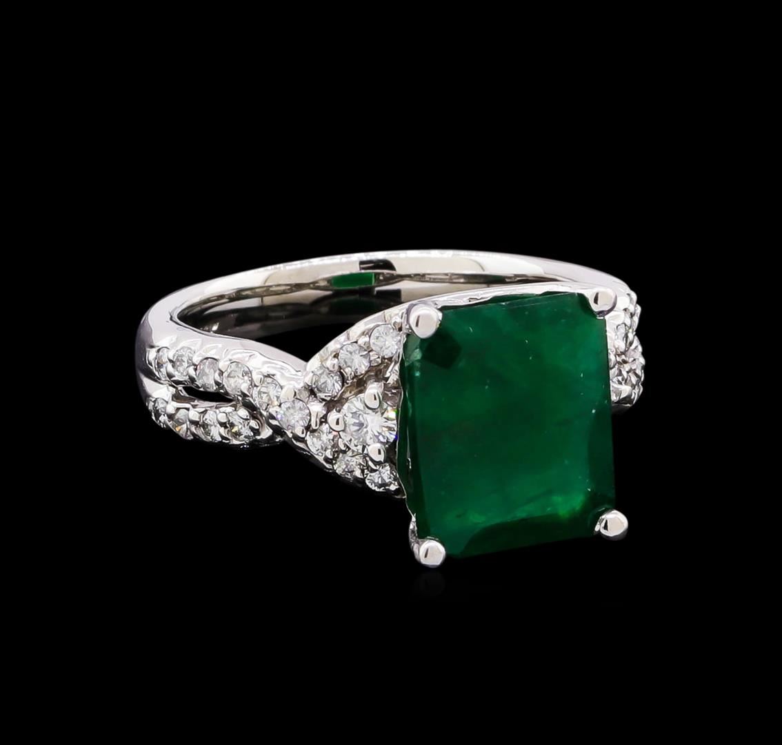 One ring featuring: 14KT white gold weighing 5.51 grams containing one emerald with a total weight of 4.35ct and diamonds with a total weight of 0.44ct.