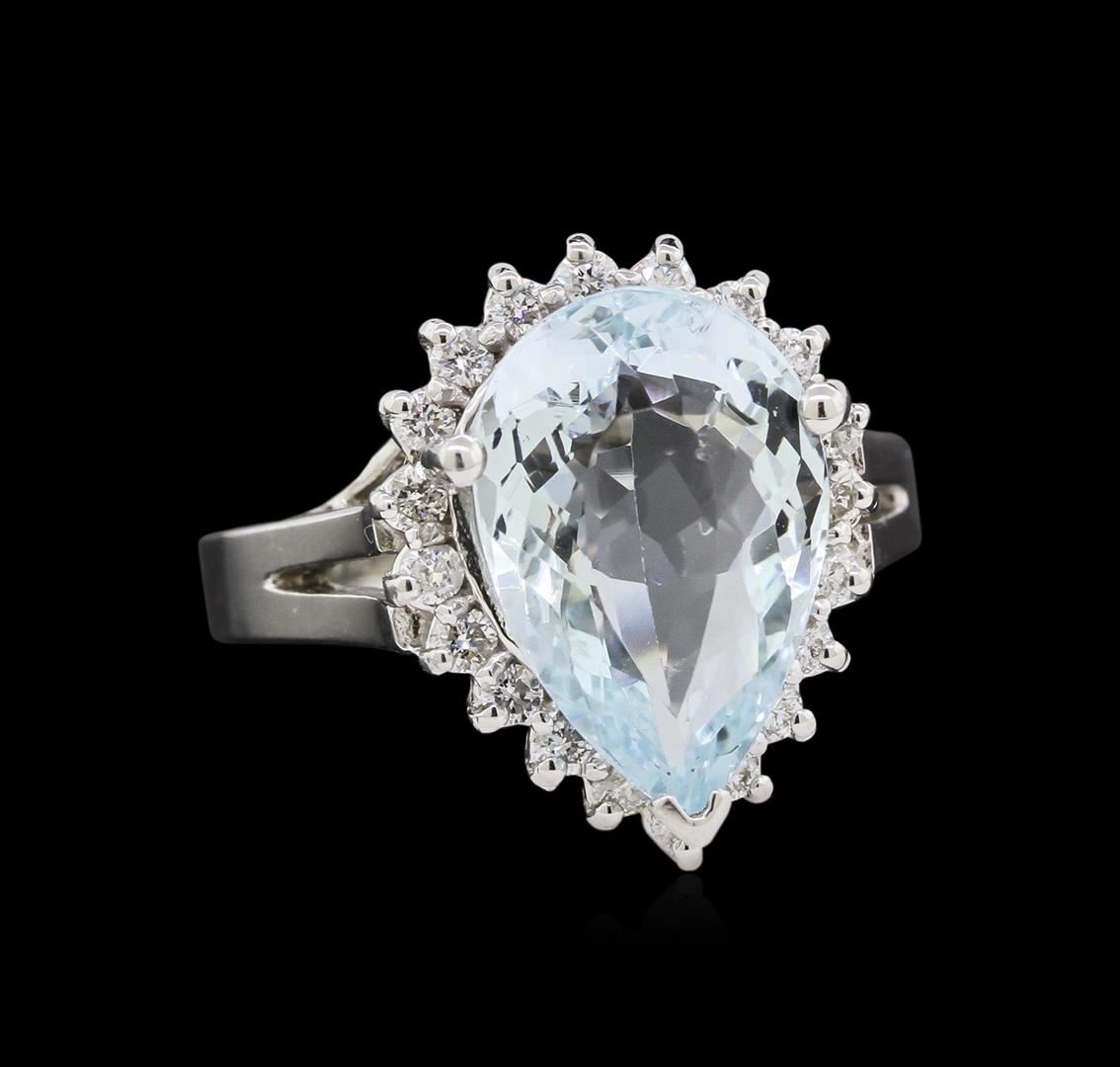 One ring featuring: 14KT white gold weighing 6.17 grams containing one aquamarine with a total weight of 4.37ct and diamonds with a total weight of 0.38ct.