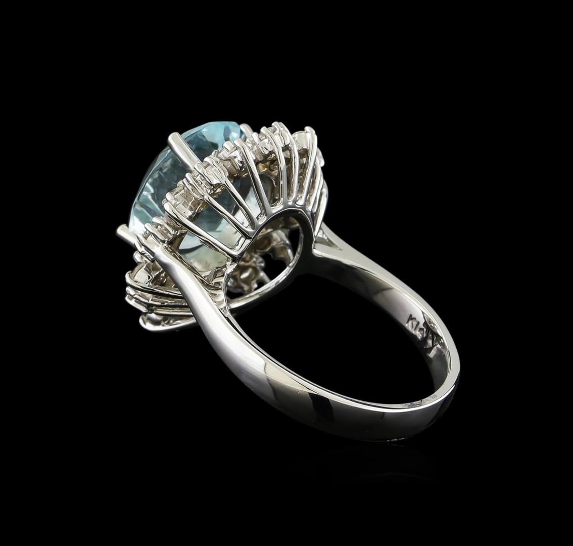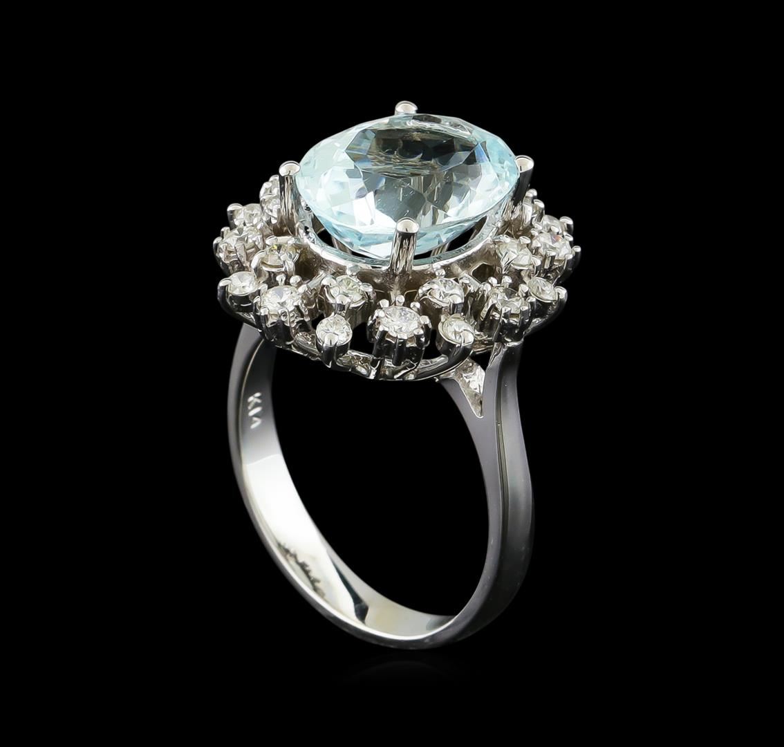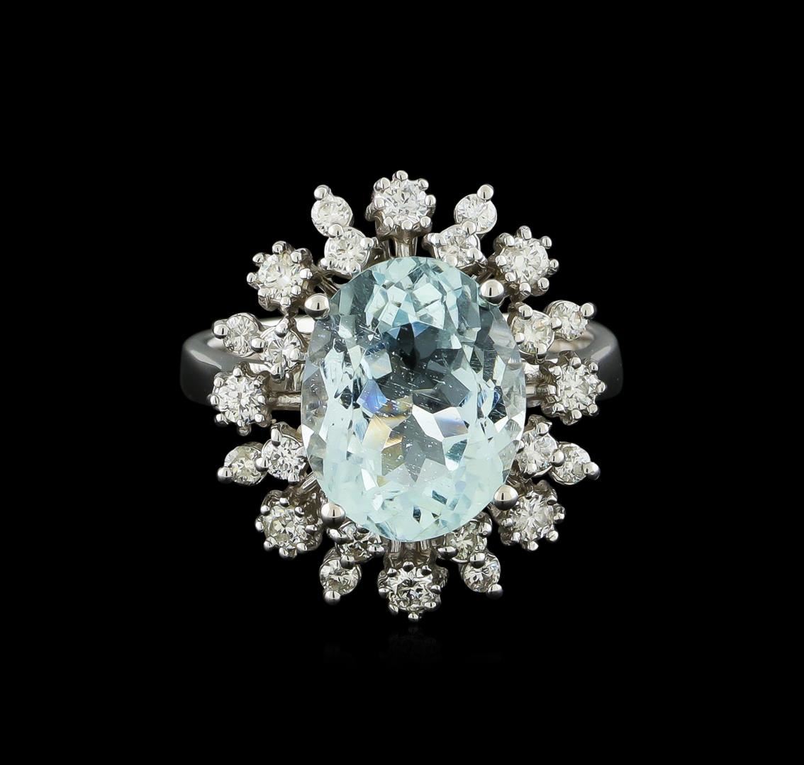 One Ring featuring: 14KT White Gold weighing 5.4 grams containing one Aquamarine center stone with a total weight of 4.3ct and Diamonds with a total weight of 0.58ct.