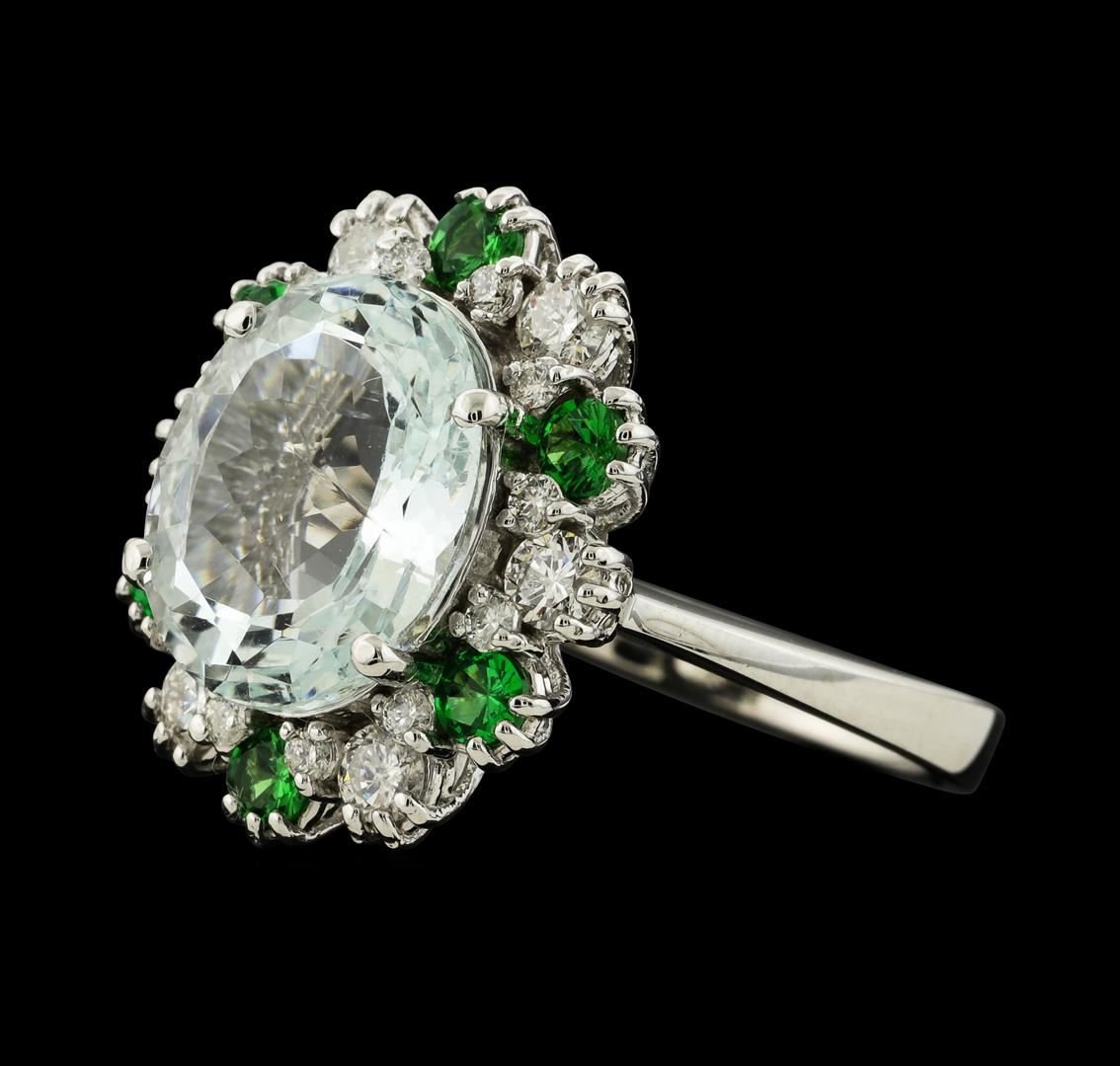 One ring : 14KT white gold weighing 4.73gm containing aquamarine with a total weight of 4.40ct, sapphire weighing 0.83ctw and diamonds weighing 0.60ctw.