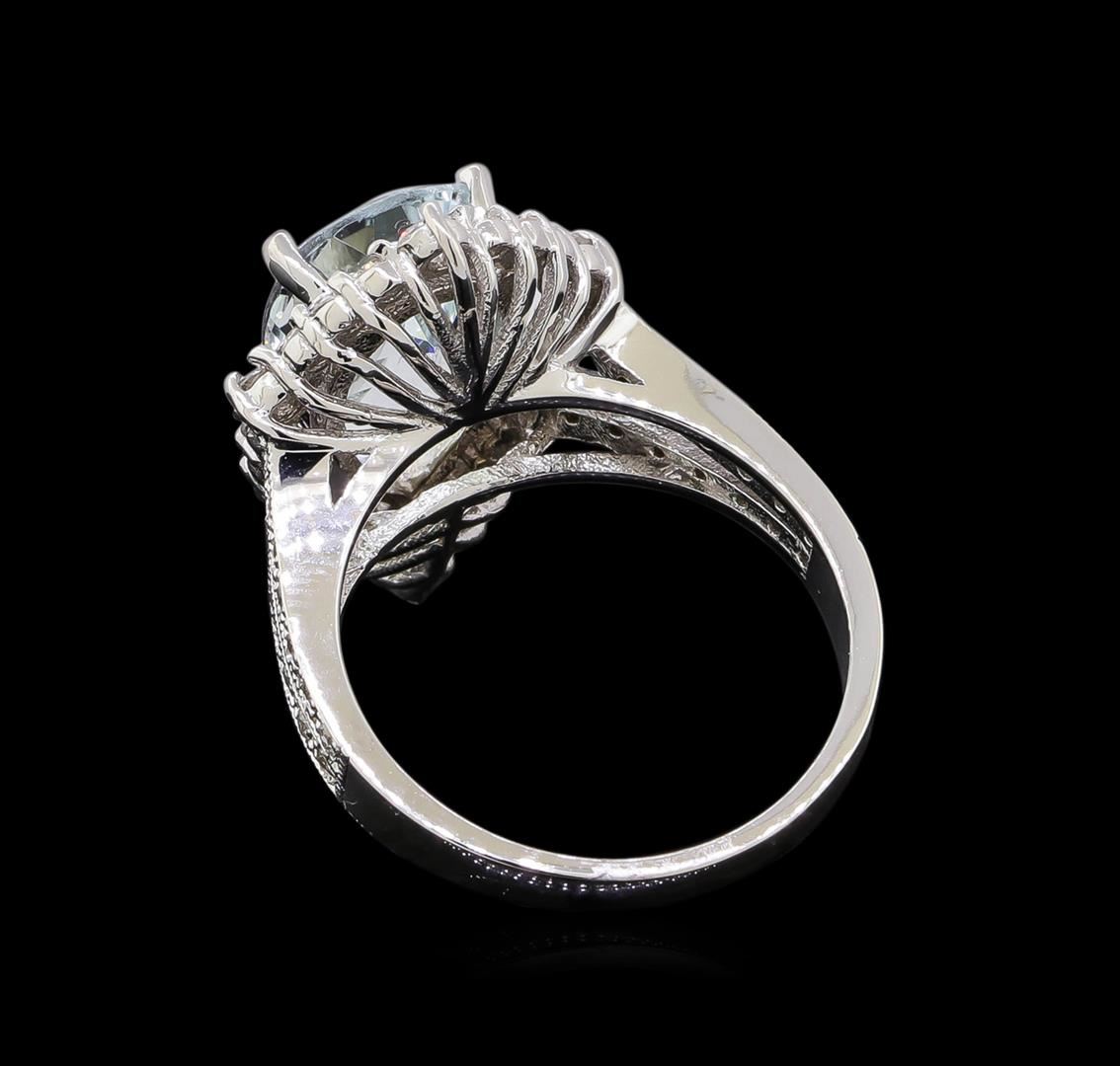 One ring : 14KT white gold weighing 4.53gm containing one aquamarine stone with a total weight of 4.46ct. and diamonds weighing 0.67ctw.