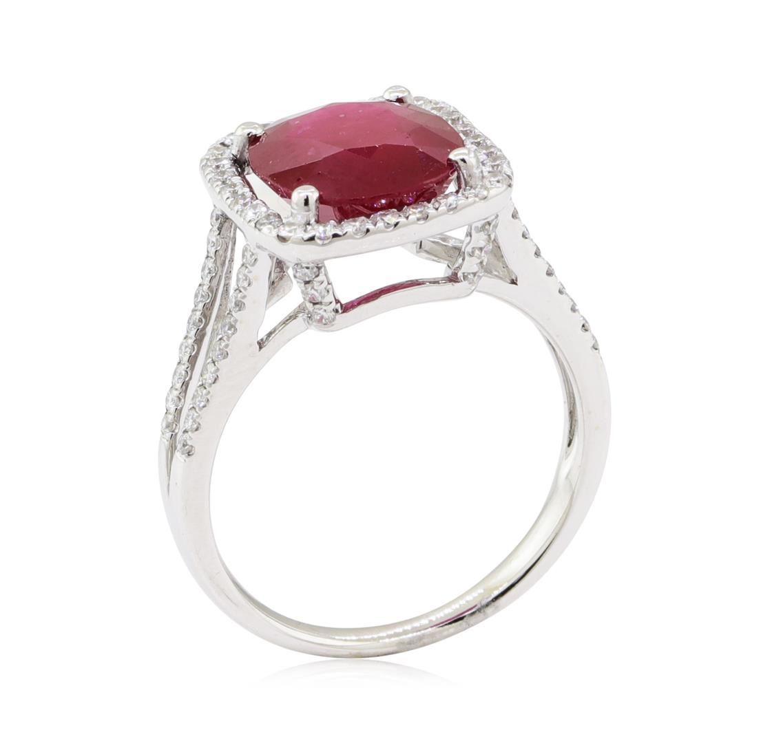 One electronically tested 18KT white gold lady's cast fashion ring with a split shank halo with a bright polish finish. The featured lady's ring has a shank measuring 1.90 millimeters wide. Identified with markings of '18K 750'. Condition is like new, goo