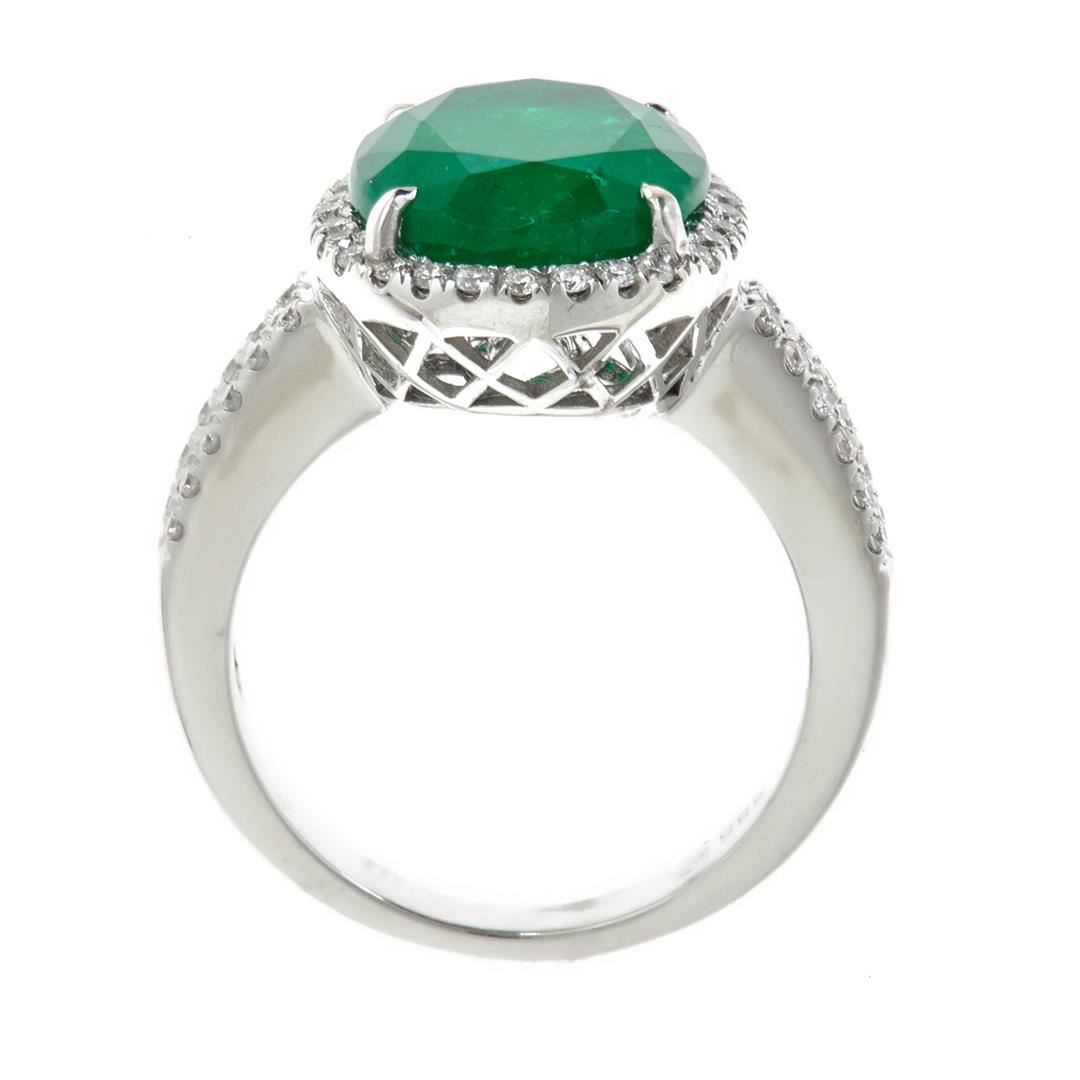 One lady's ring featuring: 14KT white gold weighing 5.47 grams containing one emerald weighing 4.44ct and diamonds weighing 0.37ctw.