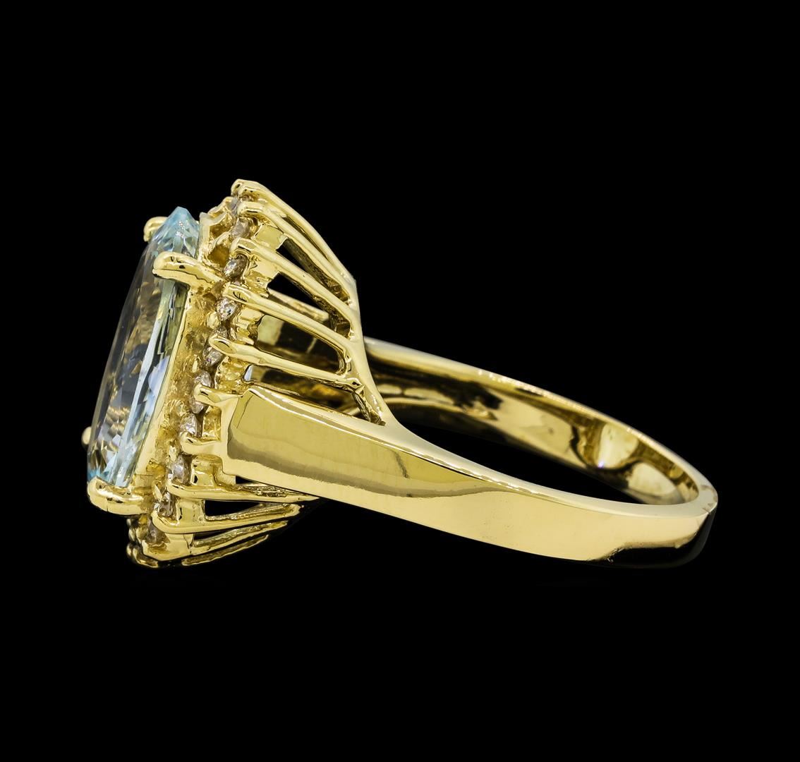 One Aquamarine and Diamond Ring including: 14KT Yellow Gold weighing a total of 6.60 grams, Aquamarine weighing a total of 4.45ct, and 22 Diamonds weighing a total of 0.54ctw.