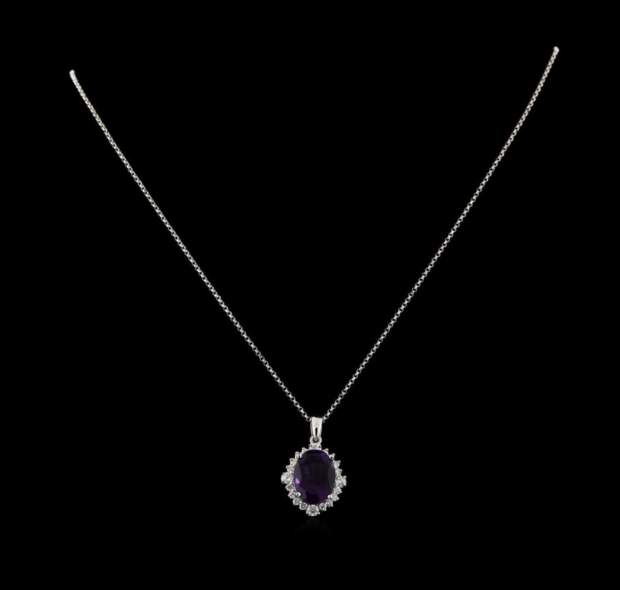 One Pendant With Chain featuring: 14KT White Gold weighing 3.6 grams containing one Amethyst center stone with a total weight of 4.46ct and Diamonds with a total weight of 0.63ct.