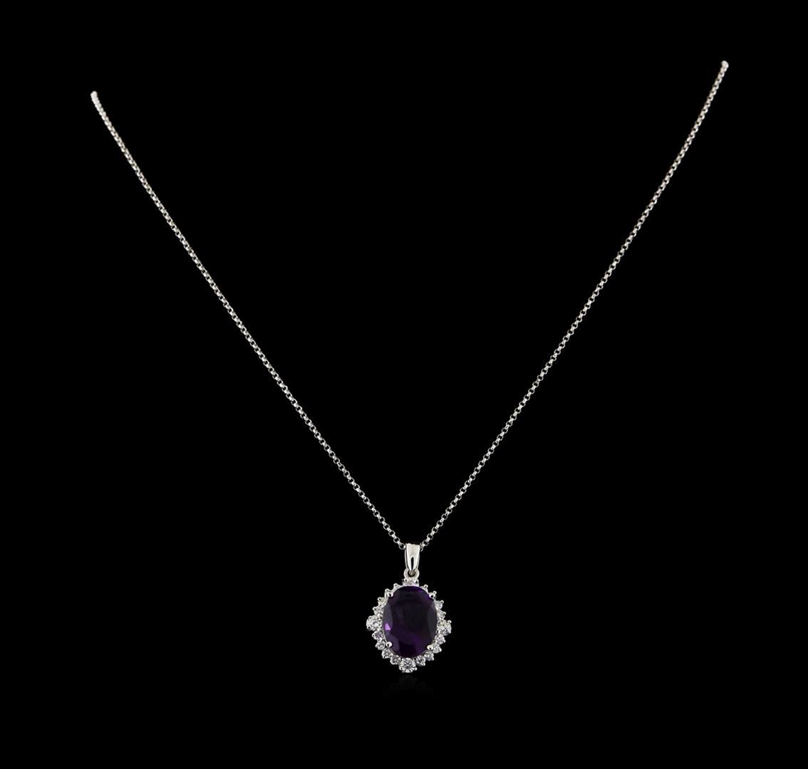 One Pendant With Chain featuring: 14KT White Gold weighing 3.6 grams containing one Amethyst center stone with a total weight of 4.46ct and Diamonds with a total weight of 0.63ct.