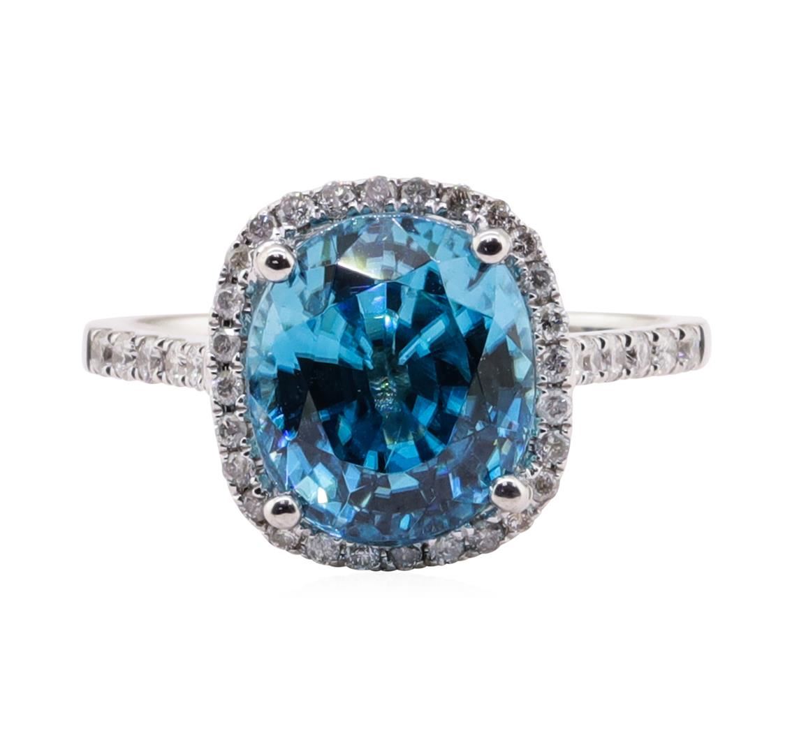 One 4.46ct Blue Zircon and Diamond Ring - 14KT White Gold. AIG certified. See Appraisal for more details. AIG Appraised.
